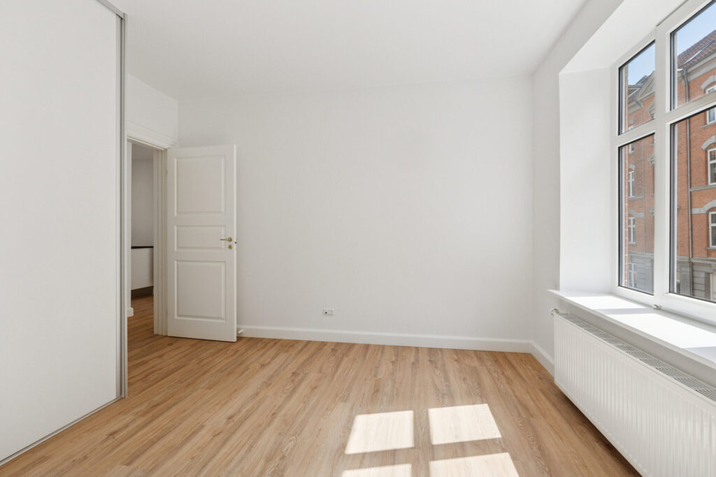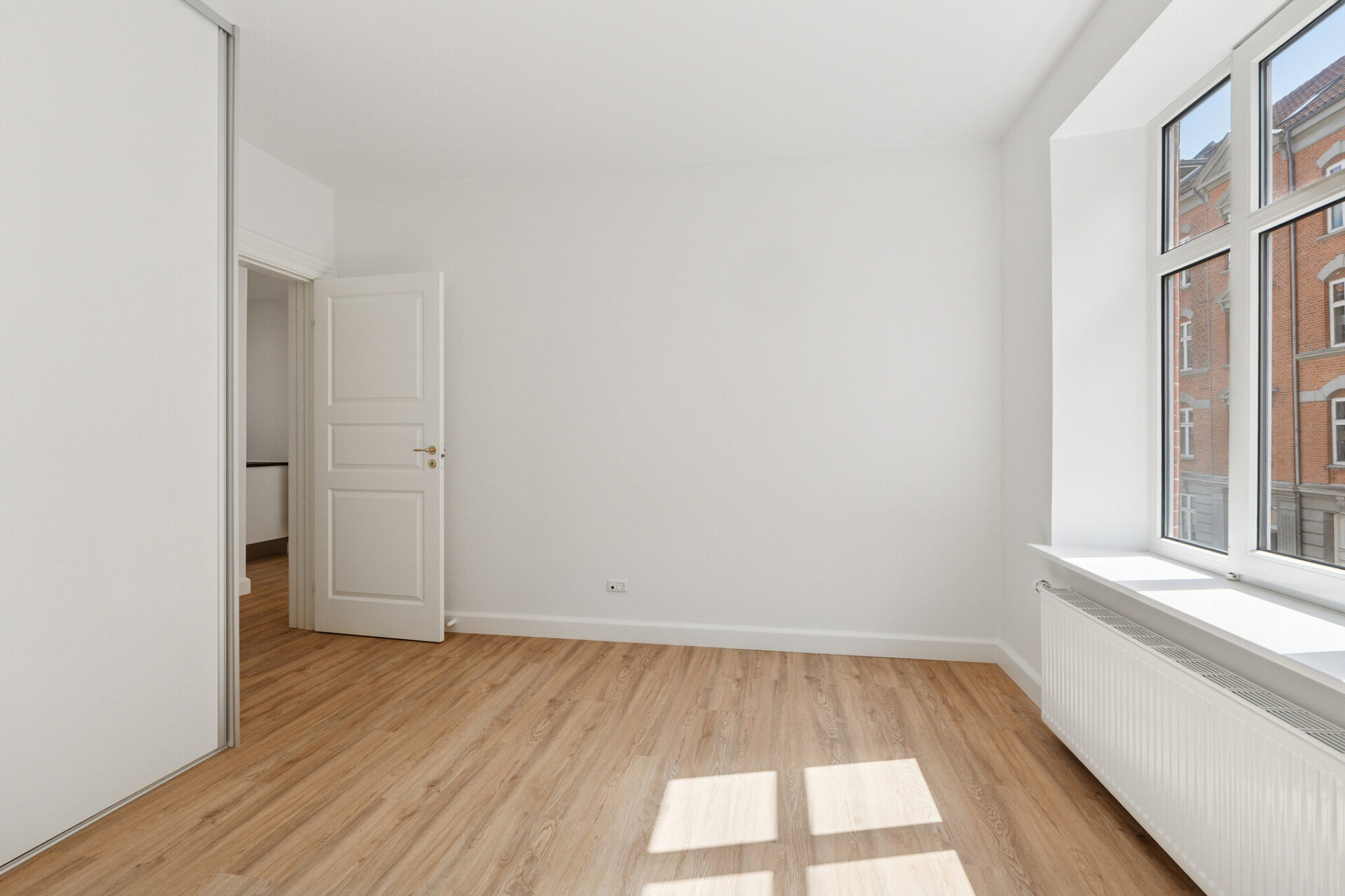 Denne smukke lejlighed nær Louise Plads er netop totalrenoveret og står klar til nye beboere, der ønsker en lys, moderne og funktionel bolig med gennemtænkte detaljer og kvalitetsmaterialer.