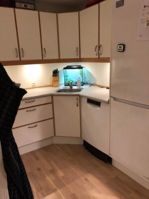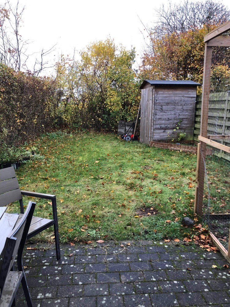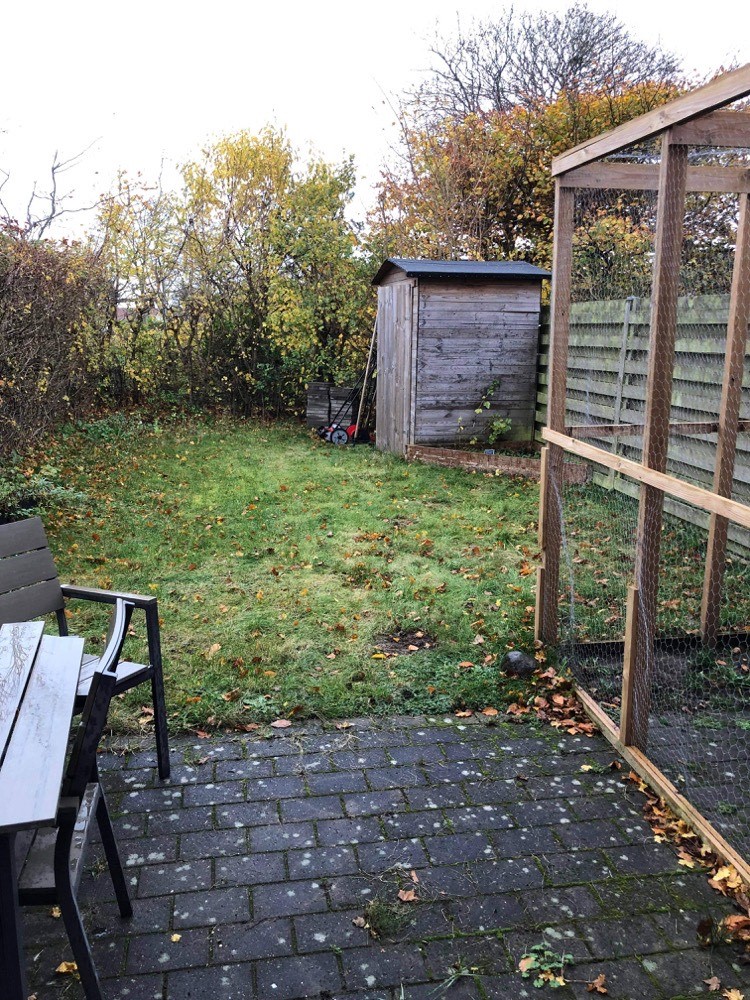Egen have på ca. 50kvm., fin terrasse, opvaskemaskine i køkkenet og plads til vaskemaskine og tørretumbler.
