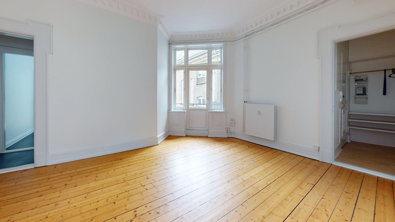 Beliggende i hjertet af Aalborg, har du caféer, butikker og byliv lige uden for døren. Denne herskabslejlighed er en sjælden perle, der kombinerer historisk charme med moderne bekvemmeligheder. Du kan nyde din morgenkaffe på den lille balkon, mens du lader dig inspirere af den pulserende atmosfære i området.