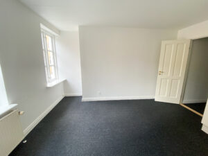 I forlængelse af stuen ligger lejlighedens første soveværelse – et oplagt bud på et master bedroom eller gæsteværelse.