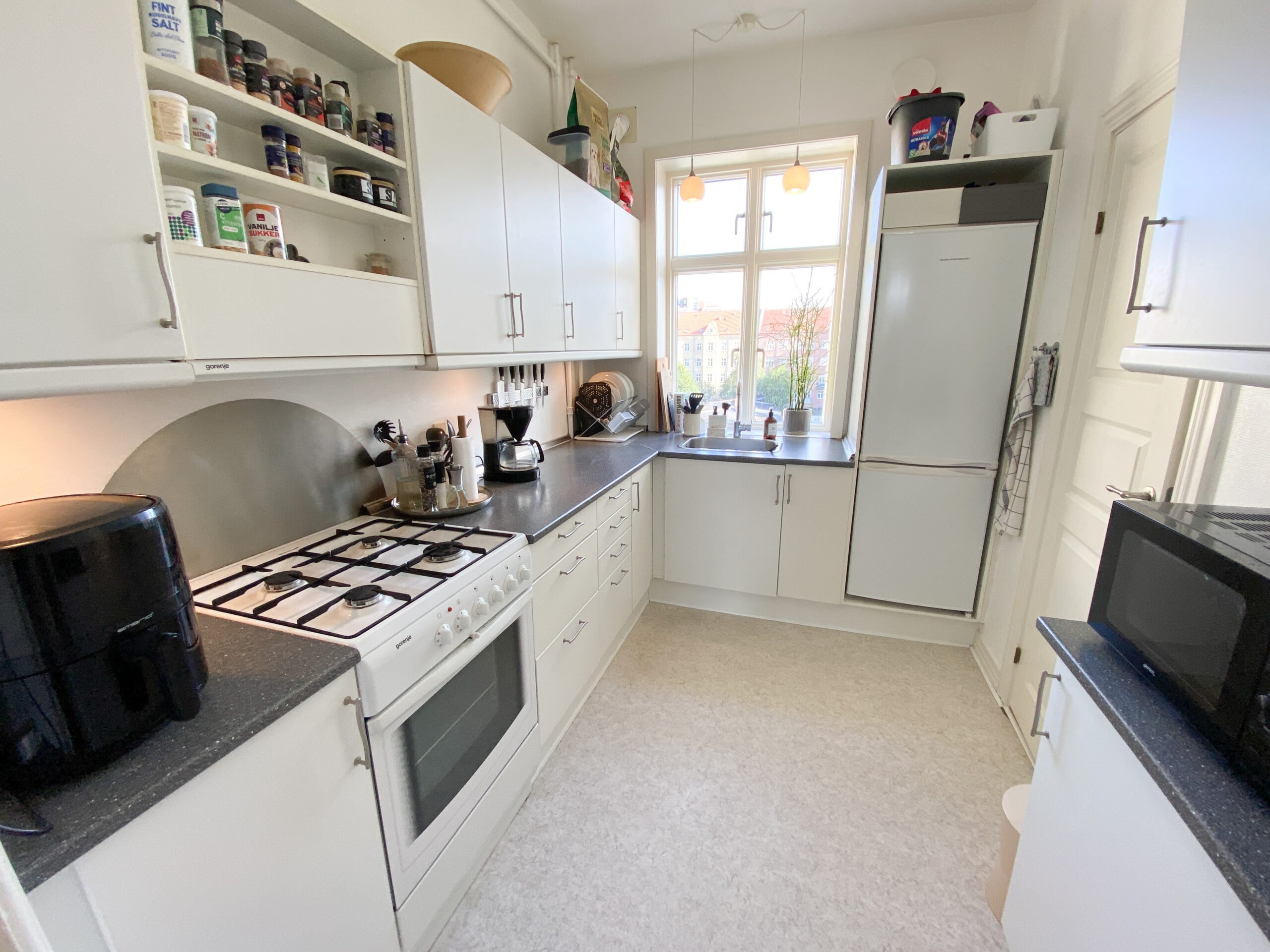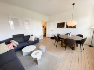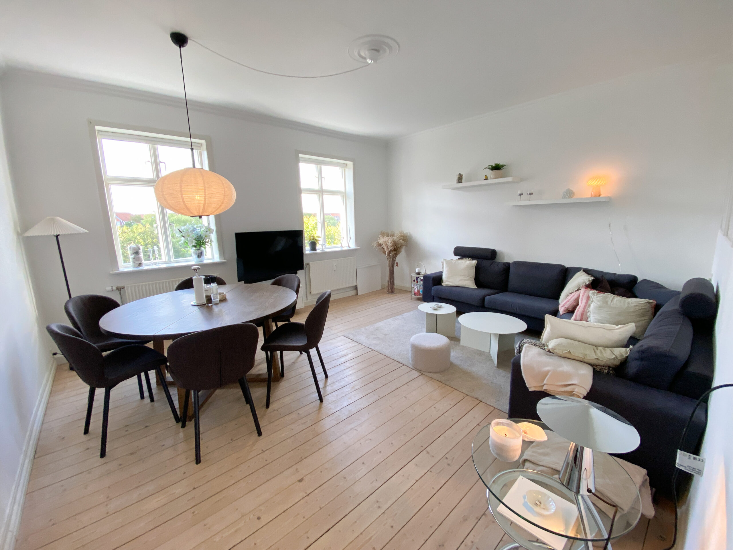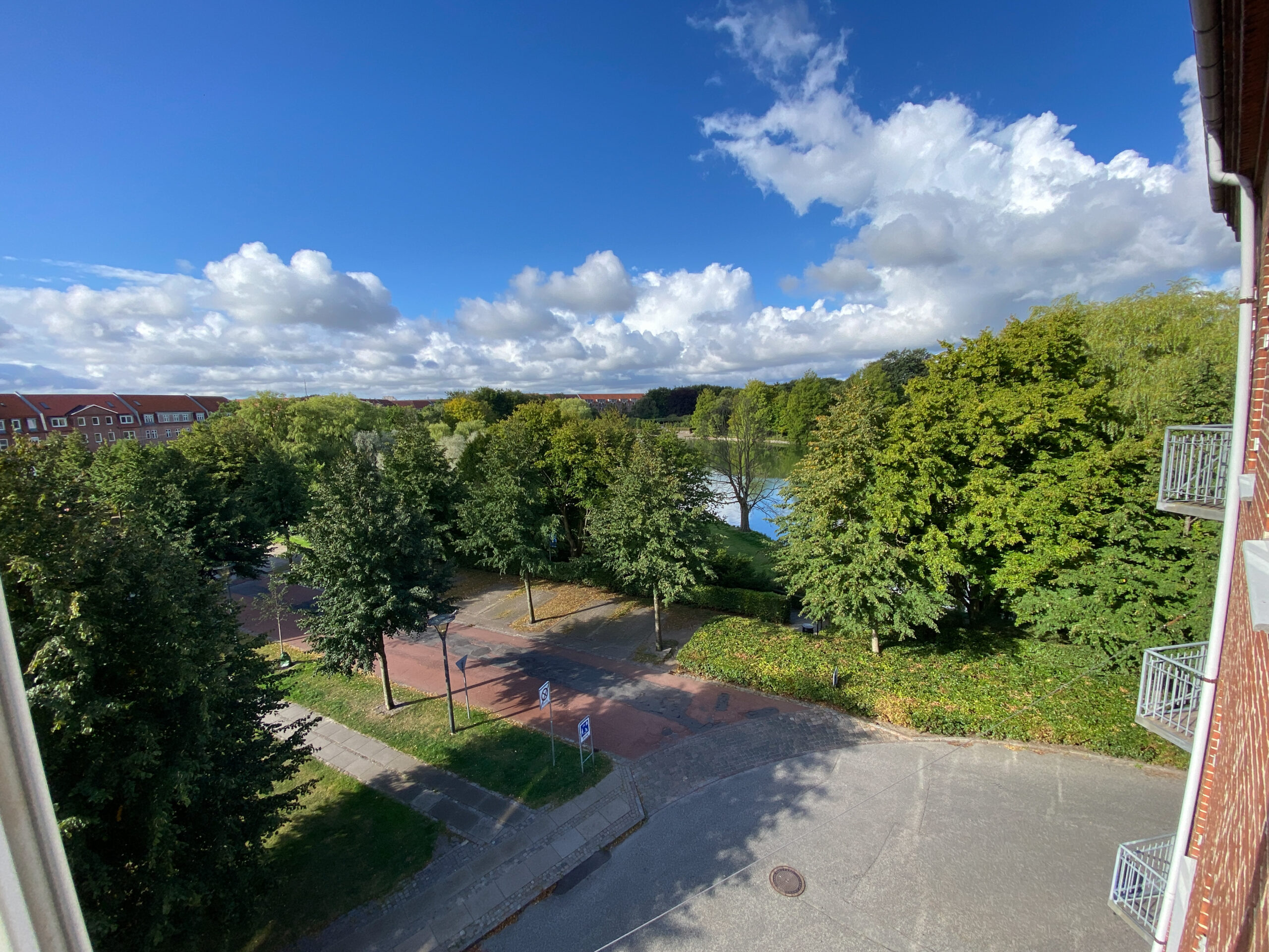 Denne lejlighed ligger lige på hjørnet af Østre Anlæg og da den ligger højere oppe, har du en fantastisk udsigt over det hele fra stuen.