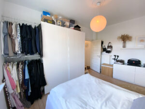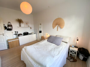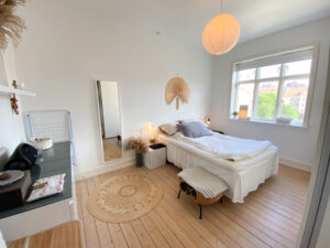 Til sidst har vi soveværelset, hvor der også er godt med lys og her er der både plads til en stor dobbeltseng samt et skrivebord m.m.