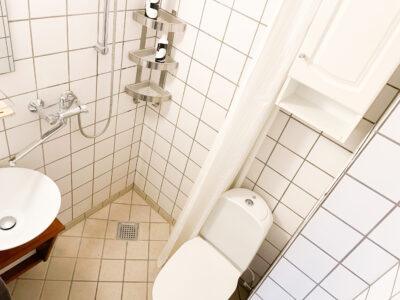 Velkommen til denne charmerende 2-værelses lejlighed, der byder dig indenfor gennem en rummelig entré, der fordeler sig elegant som en fordelingsgang. Til venstre finder du det mindre, men charmerende badeværelse, som stråler i hvide klinker og tilbyder en behagelig bruseløsning, hvor et separat hjørne er skabt til badet.