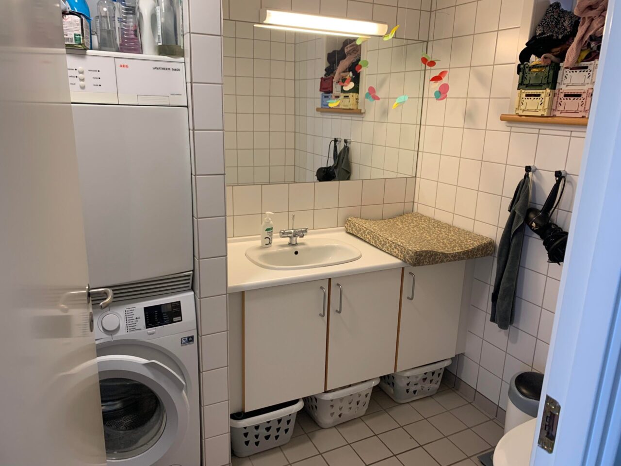 Lejligheden indeholder entré med plads til sko og overtøj. Lyst køkken/alrum med adgang til hems. Lyst HTH køkken med opvaskemaskine, køle/fryseskab, glaskeramisk komfur, emhætte og god skabsplads. Skønt badeværelse med separat bruiseniche, vaskesøjle samt vaskemaskine og tørretumbler. Soveværelse.