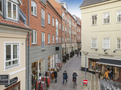 Her har du byens butikker tæt på dig, Salling, gode indkøbsmuligheder, havnefronten, Magasin og Friis samt meget mere. Mølleplads beliggende lige rundt om hjørnet. Et område hvor der er et dejligt caféliv, og hvor der om sommeren oser af liv.