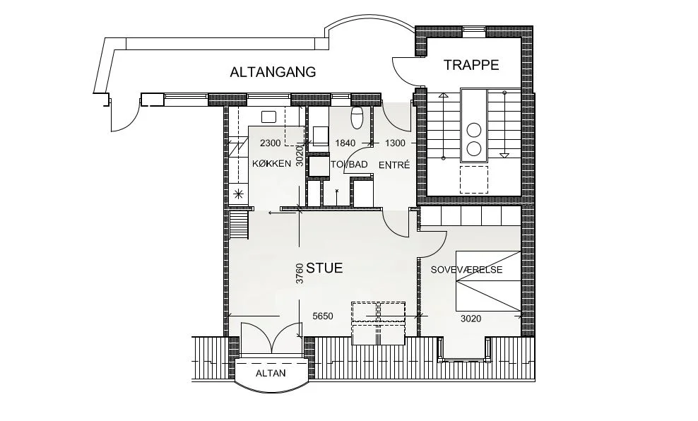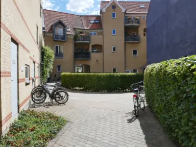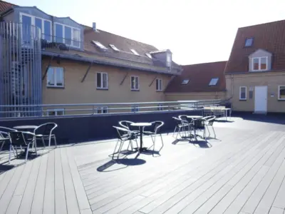Adgang til stor tagterrasse via gården samt grønt miljø.