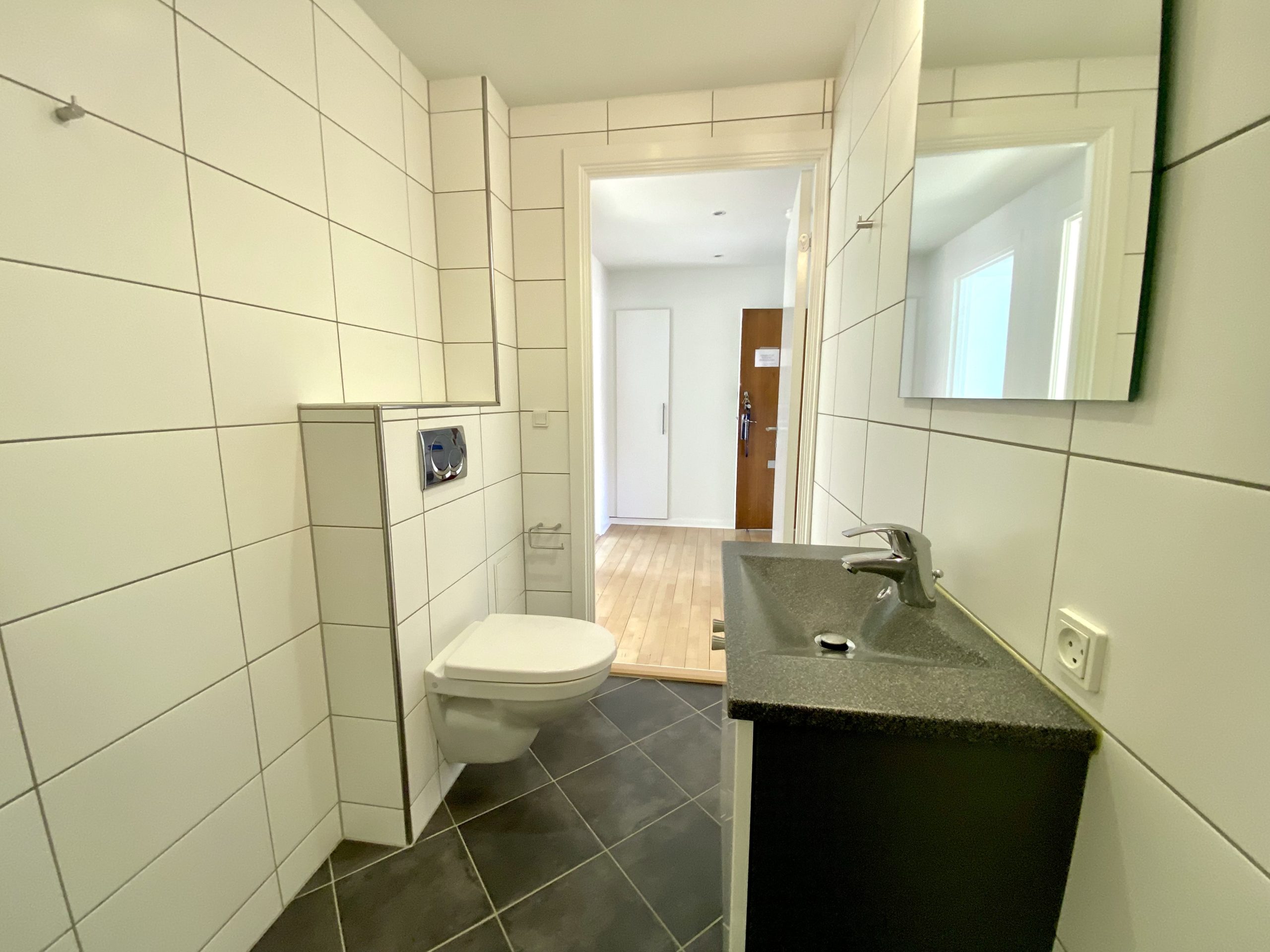 Beliggende i et roligt kvarter med gode naboer. Lejligheden har desuden et stort kælderrum samt adgang til fælles vaskeri, hvilket er praktisk for hverdagen.