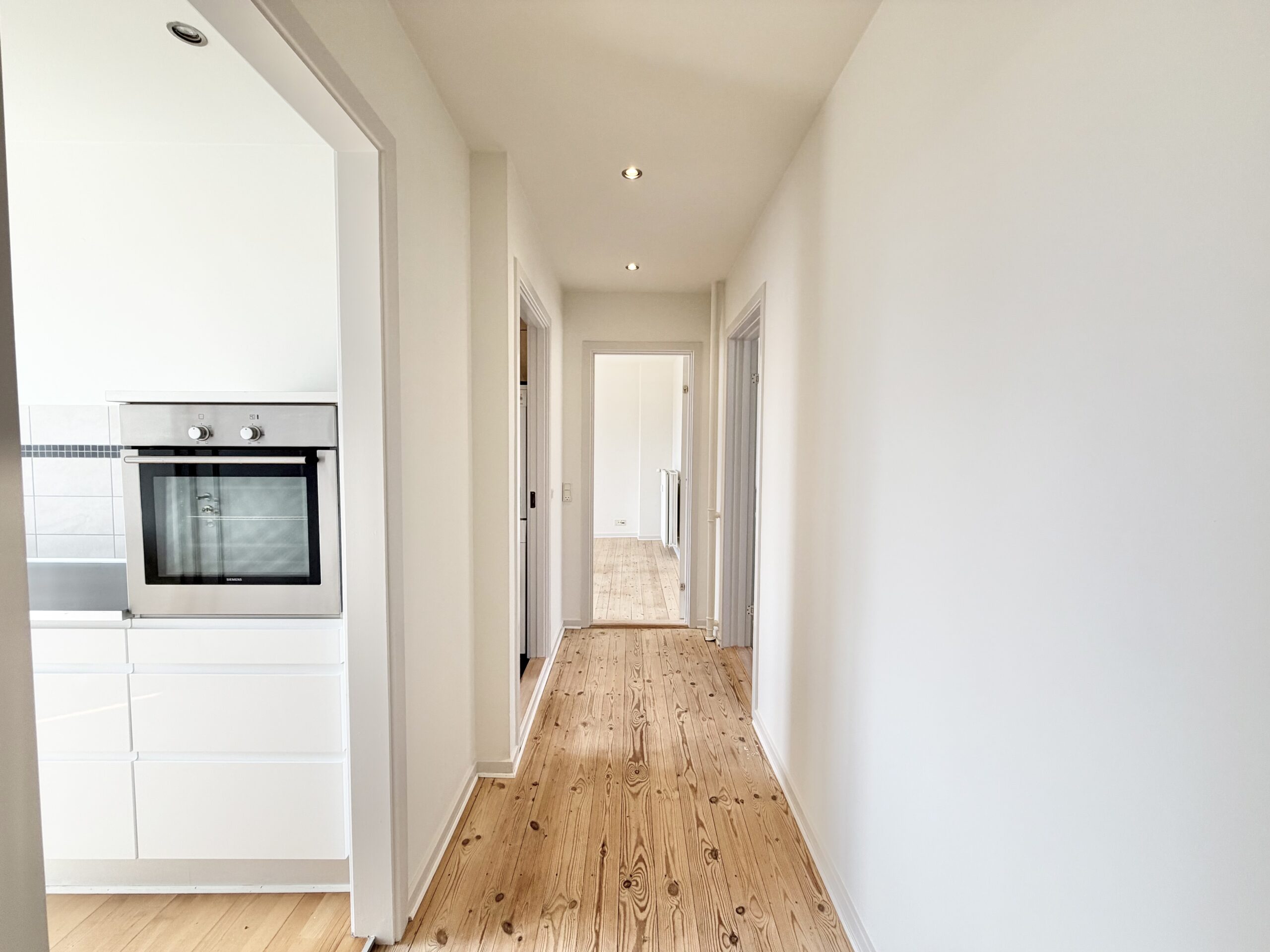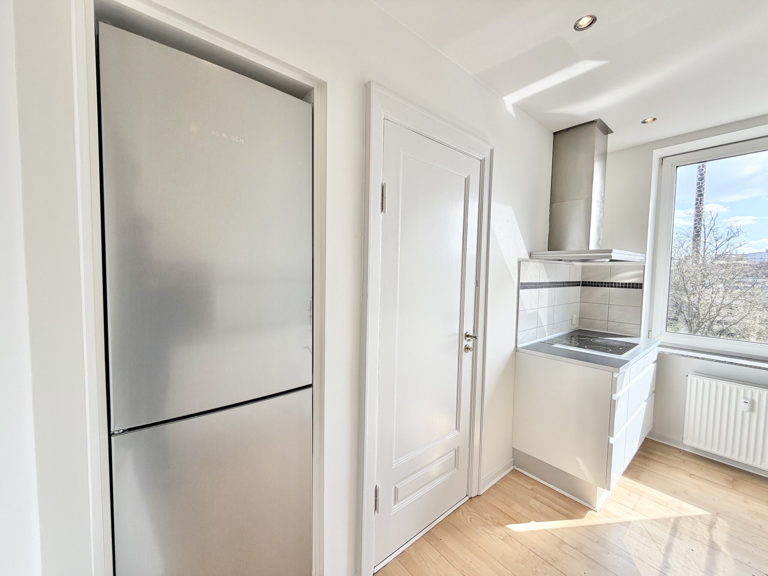 Lejligheden, der ligger på 3. sal, byder på to gode og lyse stuer, der skaber en åben og indbydende stemning. Det store soveværelse har direkte udgang til en dejlig altan, hvor du kan nyde morgenkaffen eller en stille aften. Det veludstyrede køkken rummer alle hårde hvidevarer, mens badeværelset præsenterer sig med brus samt en egen vaskemaskine og tørretumbler, hvilket gør hverdagen lettere.