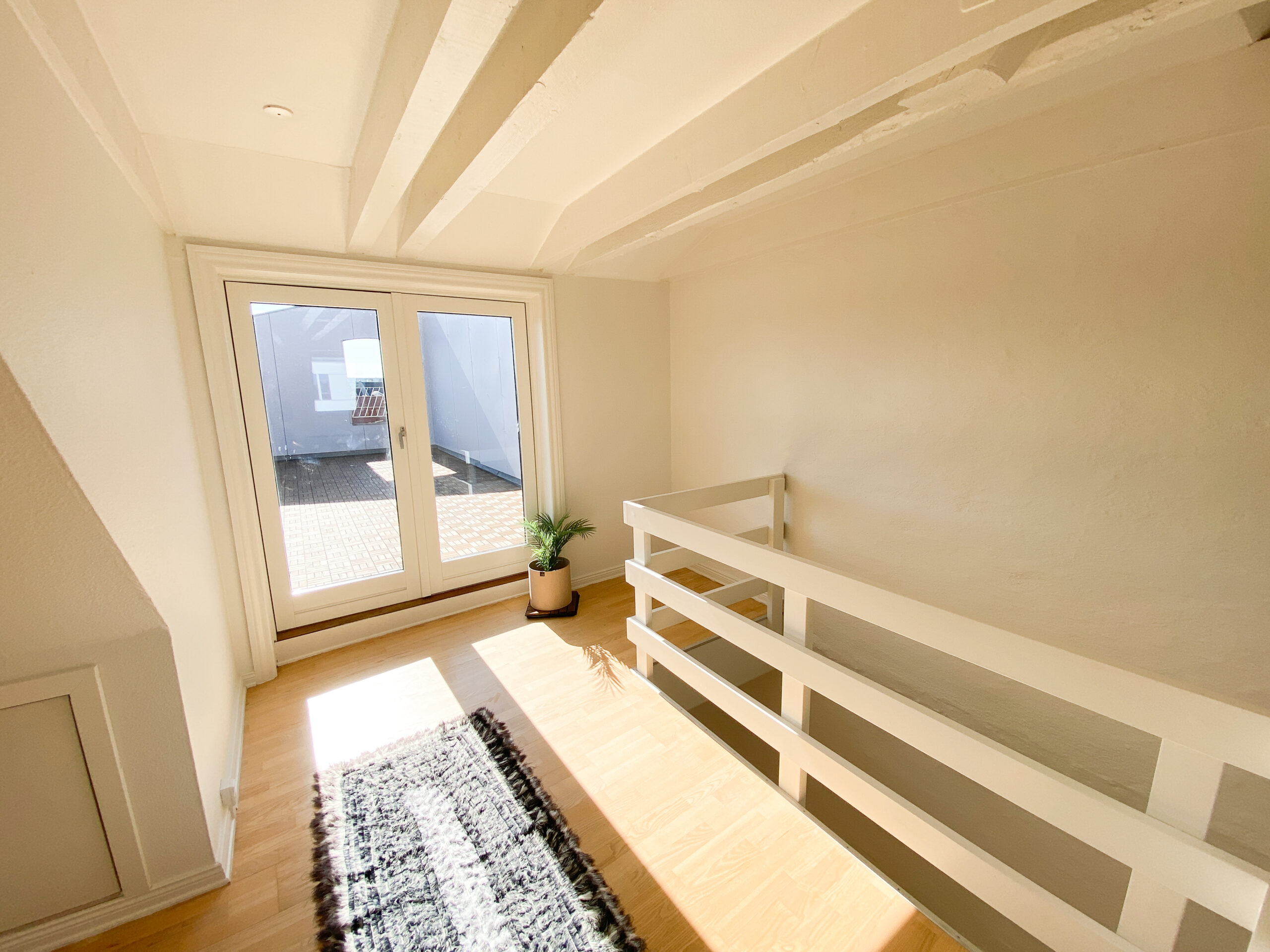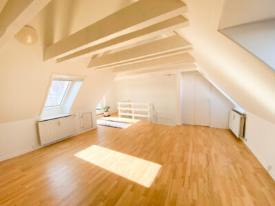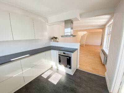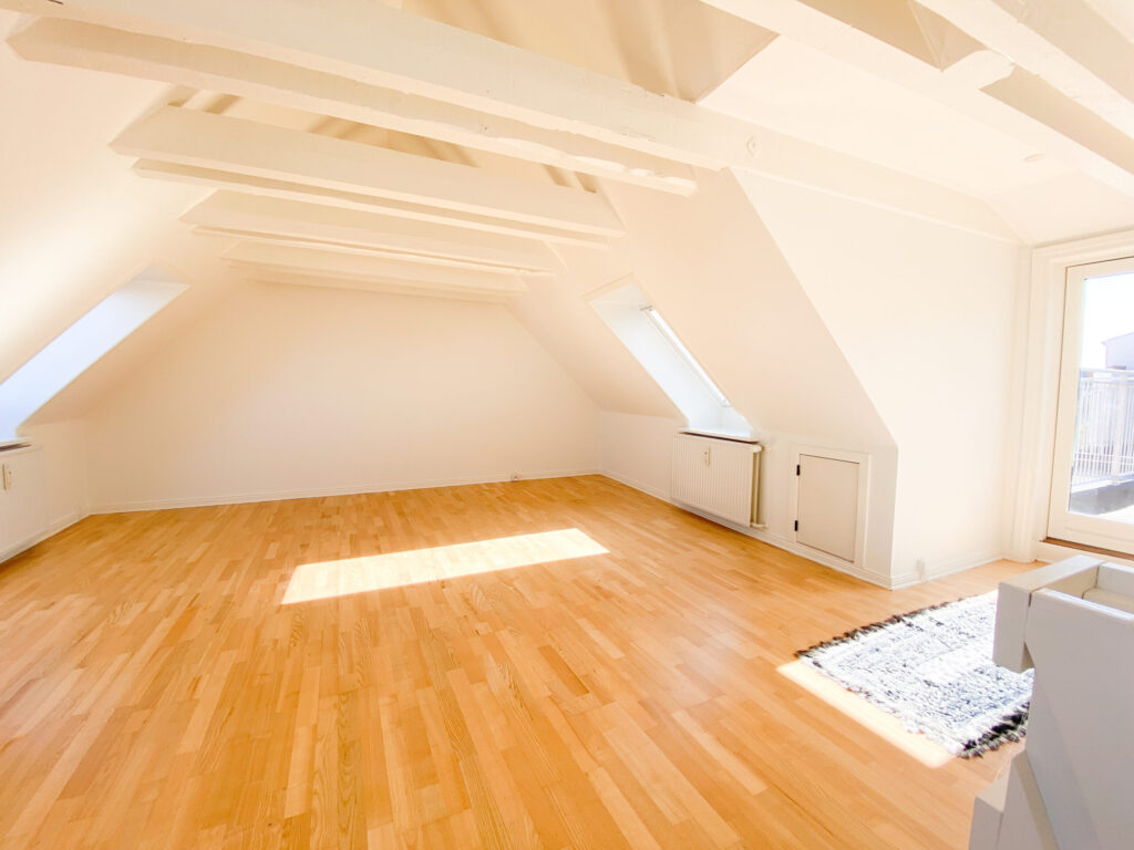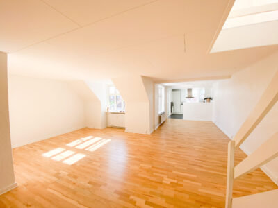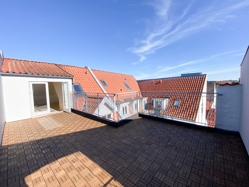 Smuk lejlighed med stor privat tagterrasse i hyggelige Nørregade – en af Aalborgs allerhyggeligste gågader. Lejligheden indeholder fin entré, stor vinkelstue i åben forbindelse til flot lyst køkken. Fra køkkenet er der adgang til fint bryggers. Herudover rummer rummer første plan en lille fordelingsgang, hvor der er adgang til to soveværelser med skabe samt et lækkert og moderne badeværelse. Fra stuen går der en trappe op til overetagen, hvor der er et lækkert stort åbent rum med fjordkig og charmerende fritliggende bjælker. 1. salen kan benyttes som ekstra opholdsstue, soveværelse, hjemmekontor eller noget helt fjerde. Fra overetagen er der er udgang til den helt fantastiske og kæmpestore tagterrasse, hvorfra der er et flot kig udover byens tage.