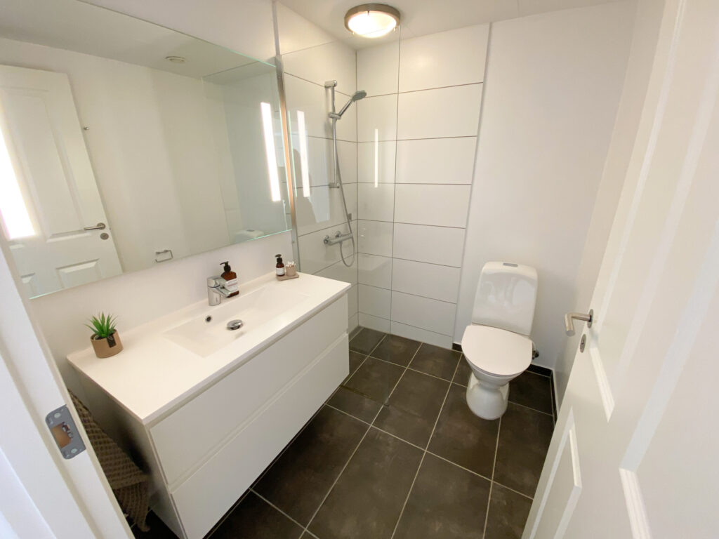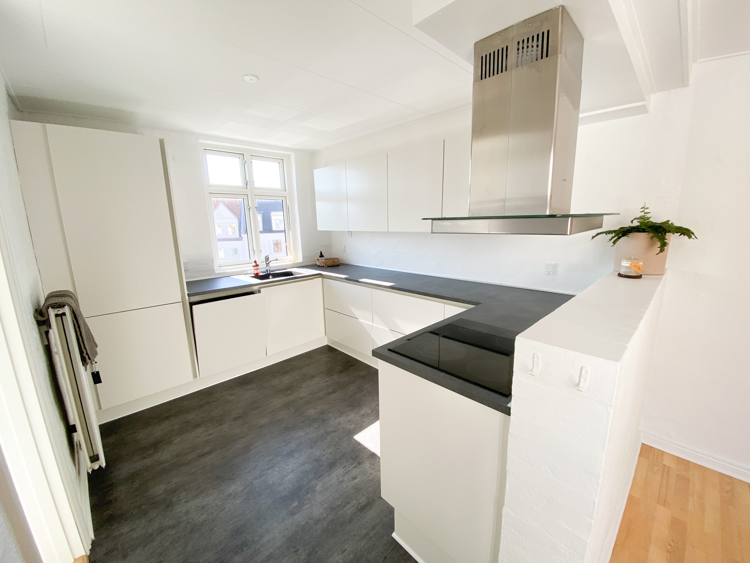 Lejligheden er har netop fået nye vinduer, nye indvendige døre og karme, ligesom tagterrassen netop er blevet renoveret med nyt værn, ny belægning på gulvet og ny beklædning på væggene. Køkken og badeværelse er lyst og lækkert med inventar fra Invita.