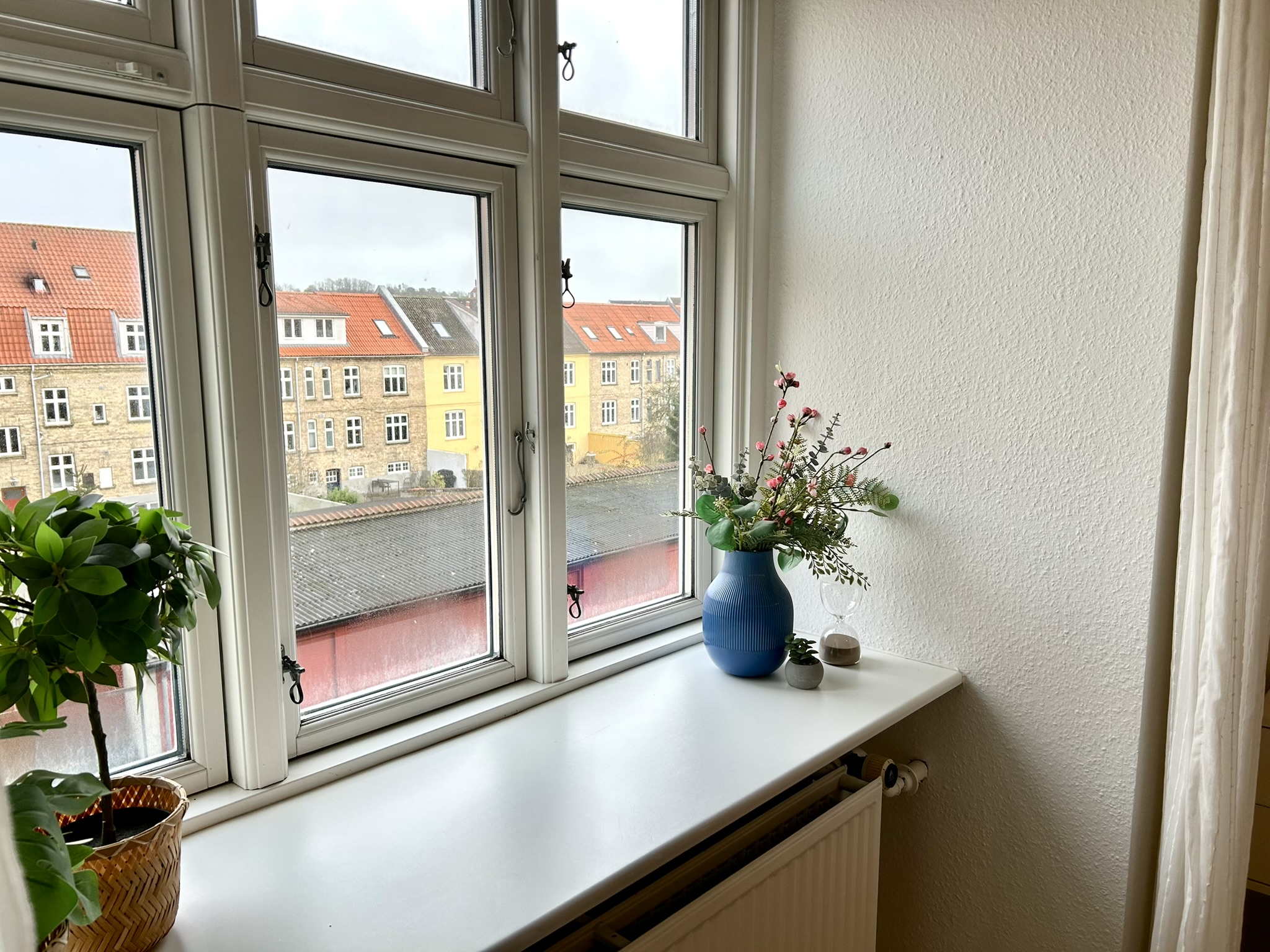 Velkommen til denne lejlighed hvor lys møder rolige omgivelser tæt ved Østre Anlæg. En indflytningsklar bolig med en behagelig atmosfære.