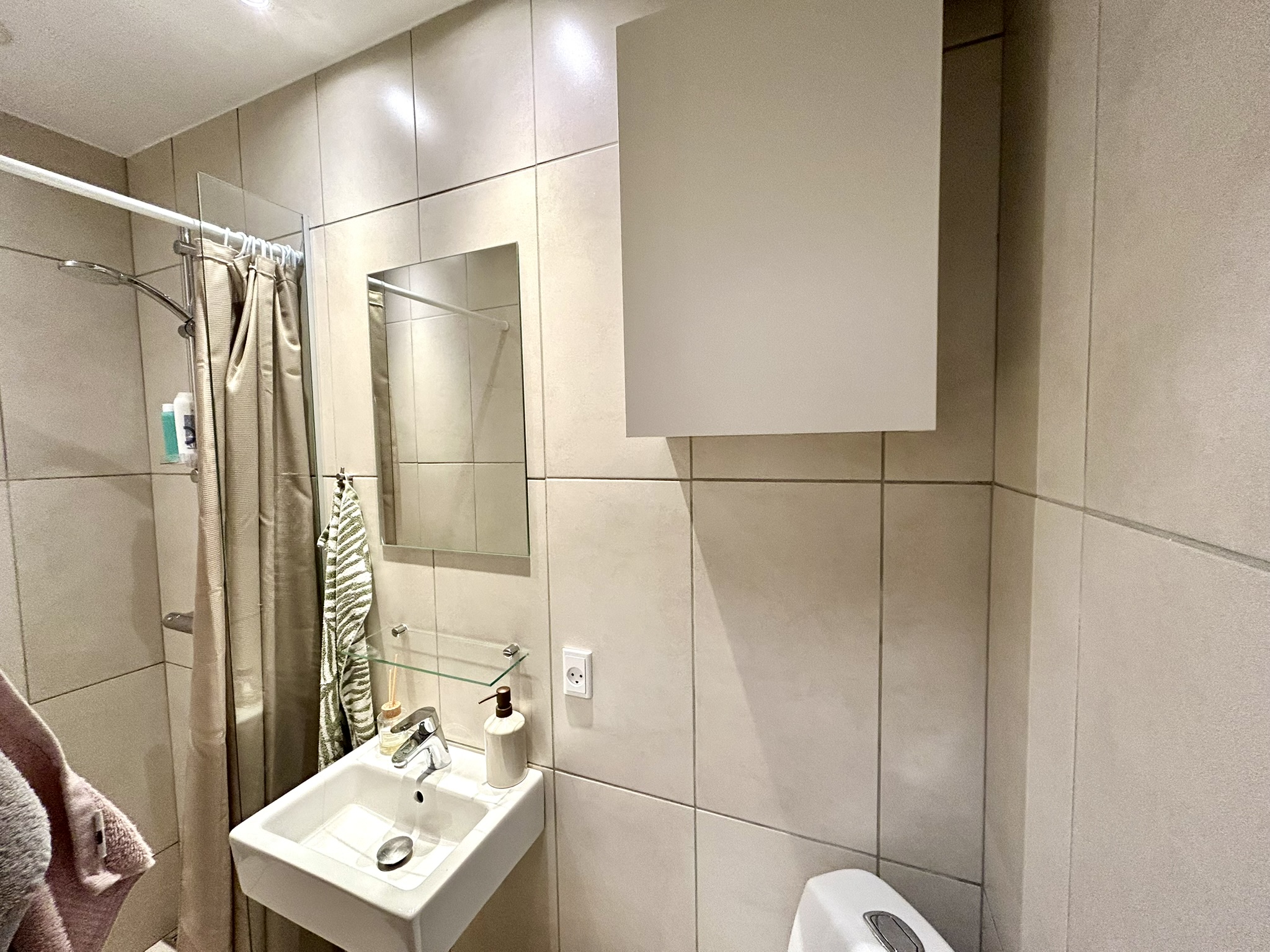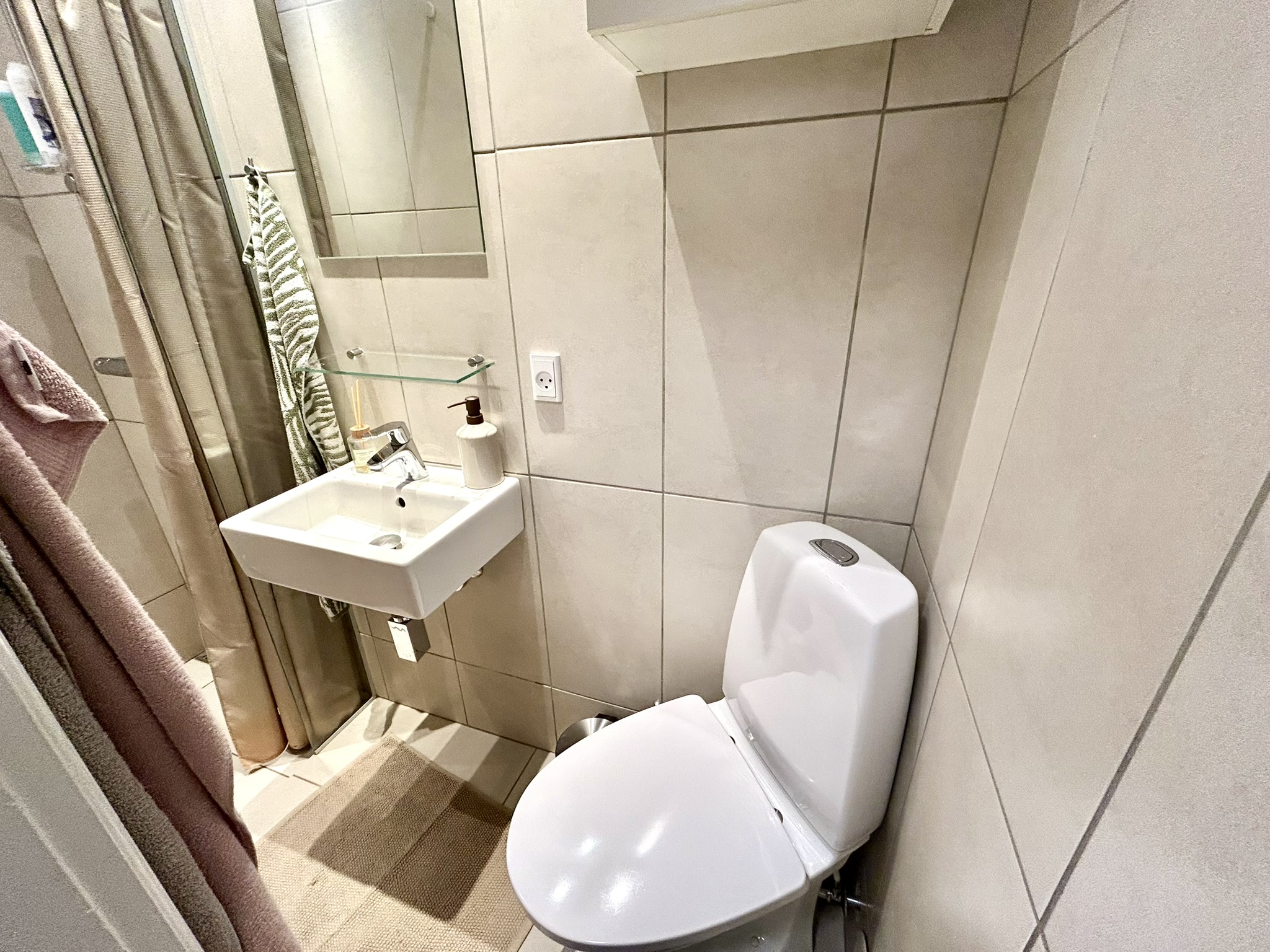 Lejligheden byder på en rummelig entré, der fører ind til en dejlig lys stue, hvor der er god plads til både spisebord og sofaafdeling. Det store soveværelse giver mulighed for en garderobe og evt. et skrivebord, mens det pæne køkken og det lyse badeværelse med bruseniche og gulvvarme fuldender boligens funktionalitet.