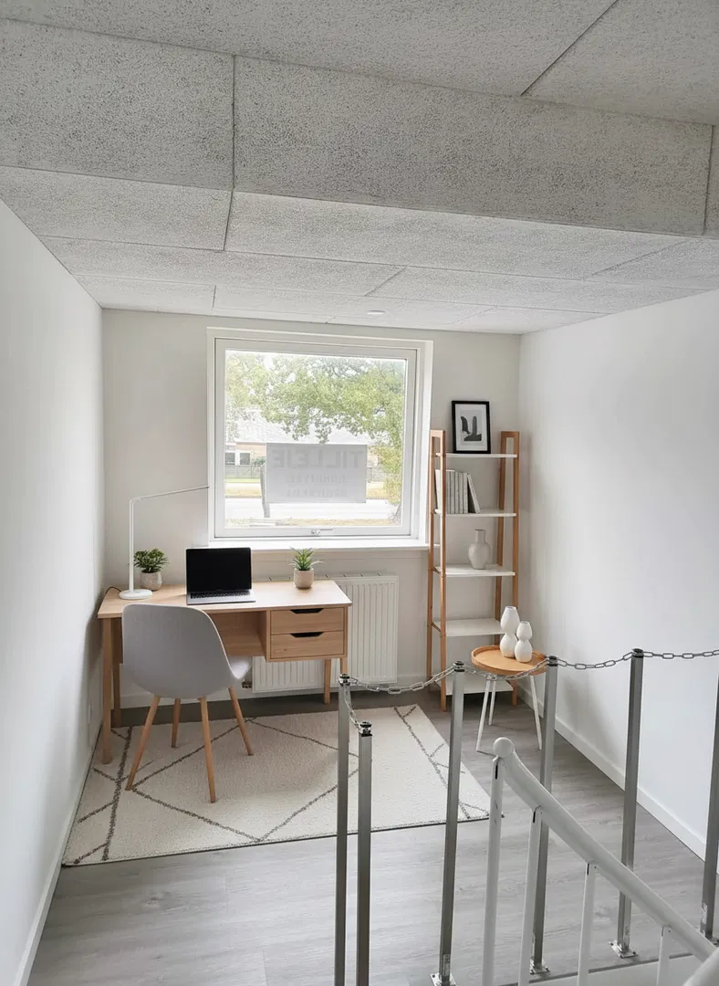 Udenfor er der en grøn, overskuelig græsplæne samt egen indkørsel, der giver nem parkering. Husdyr er tilladt efter aftale, hvilket gør det til et ideelt hjem for både par og familier, der ønsker ekstra plads til hjemmearbejde.