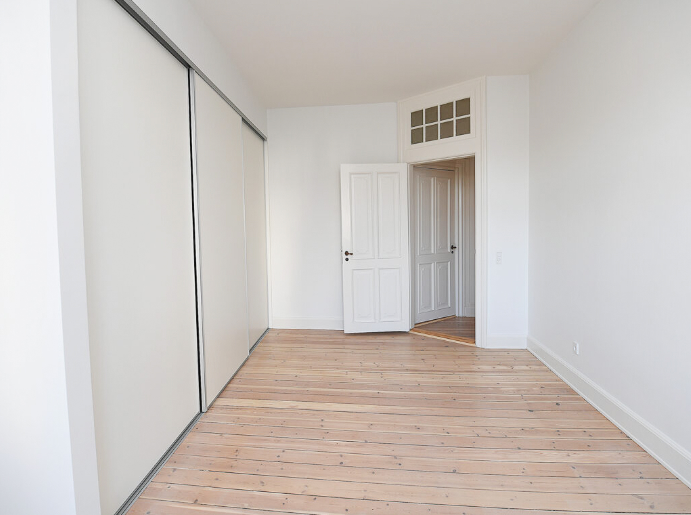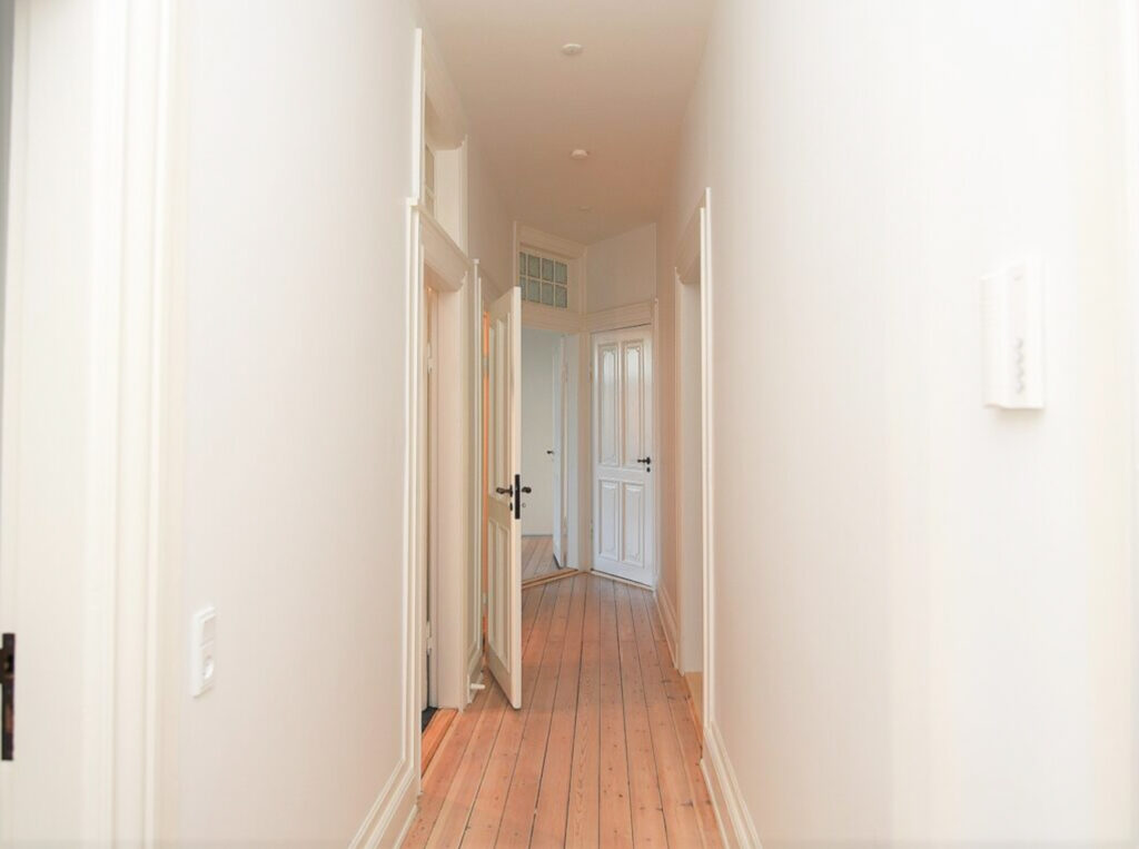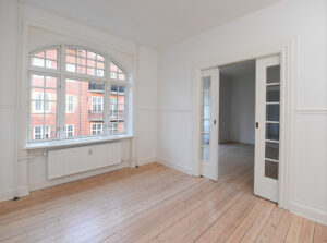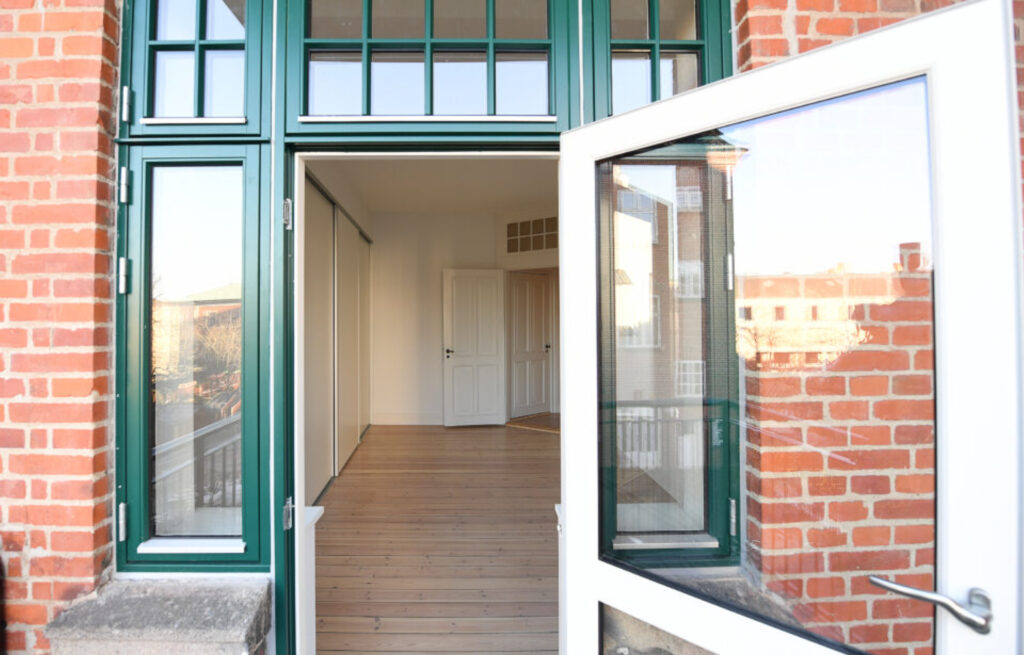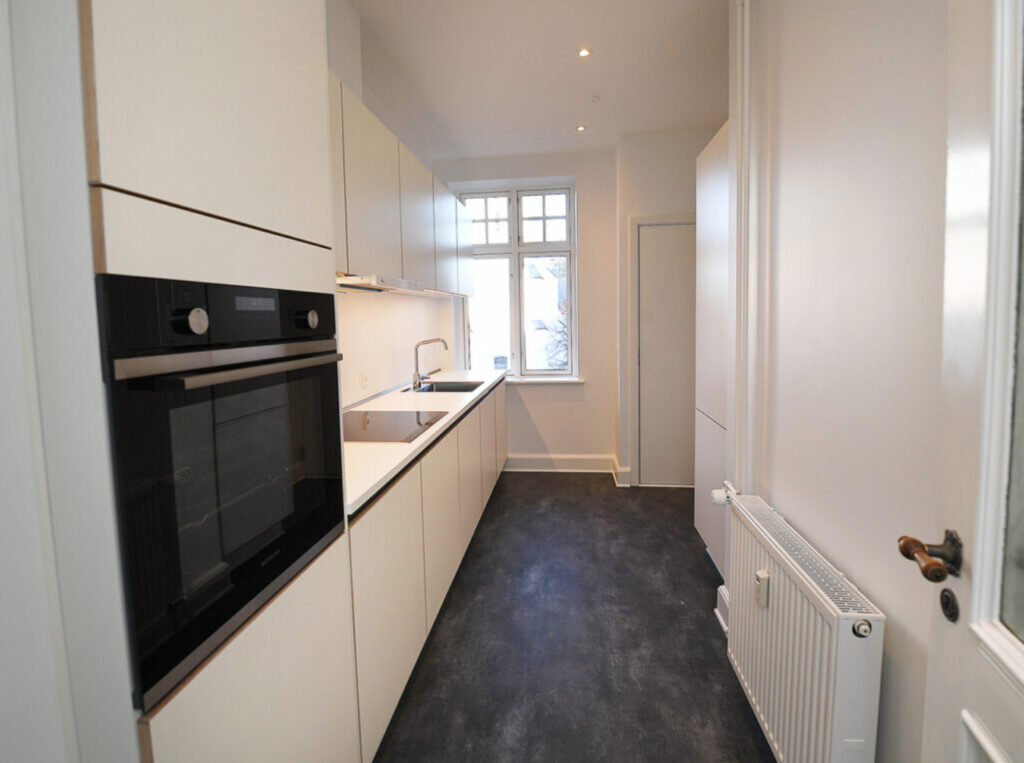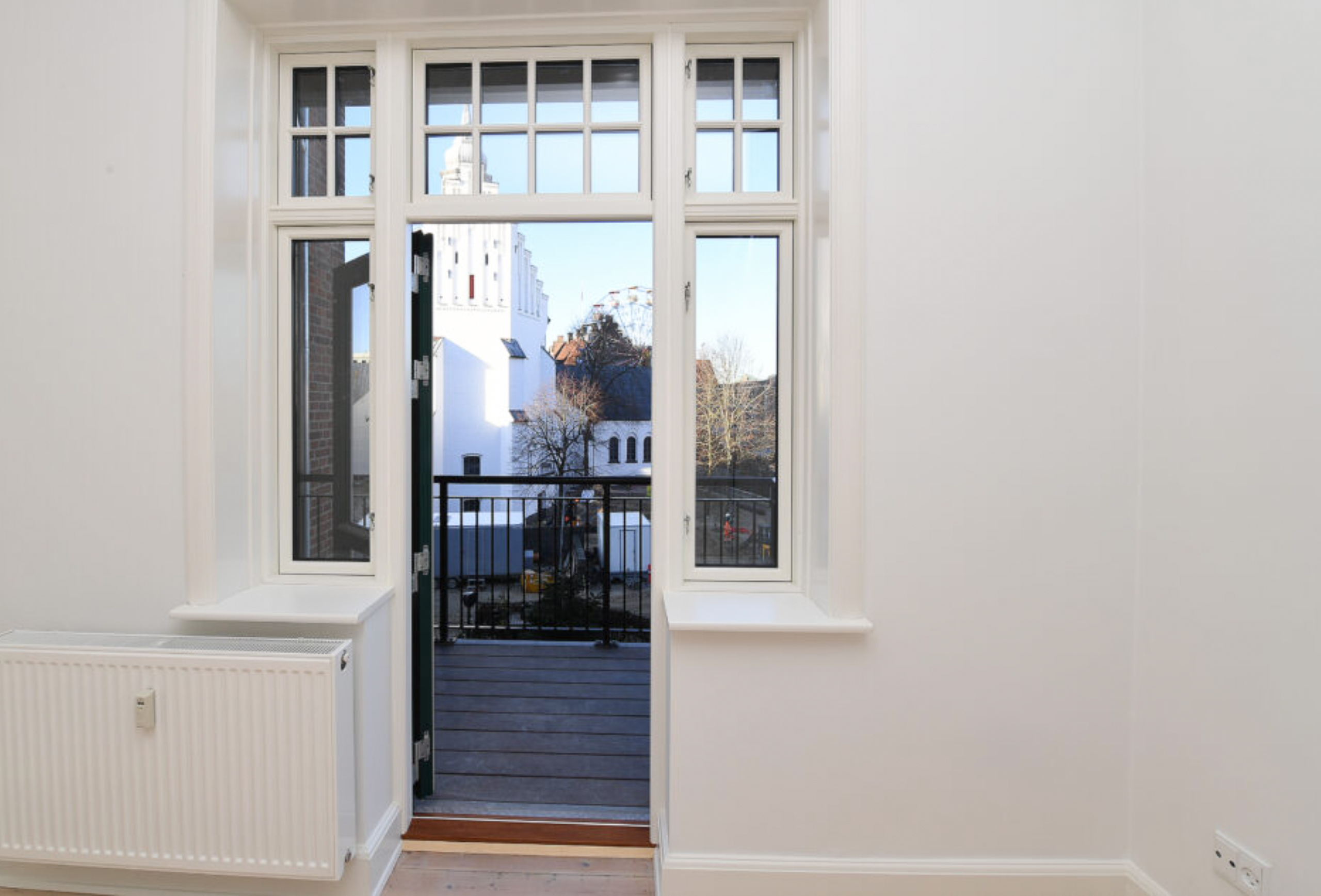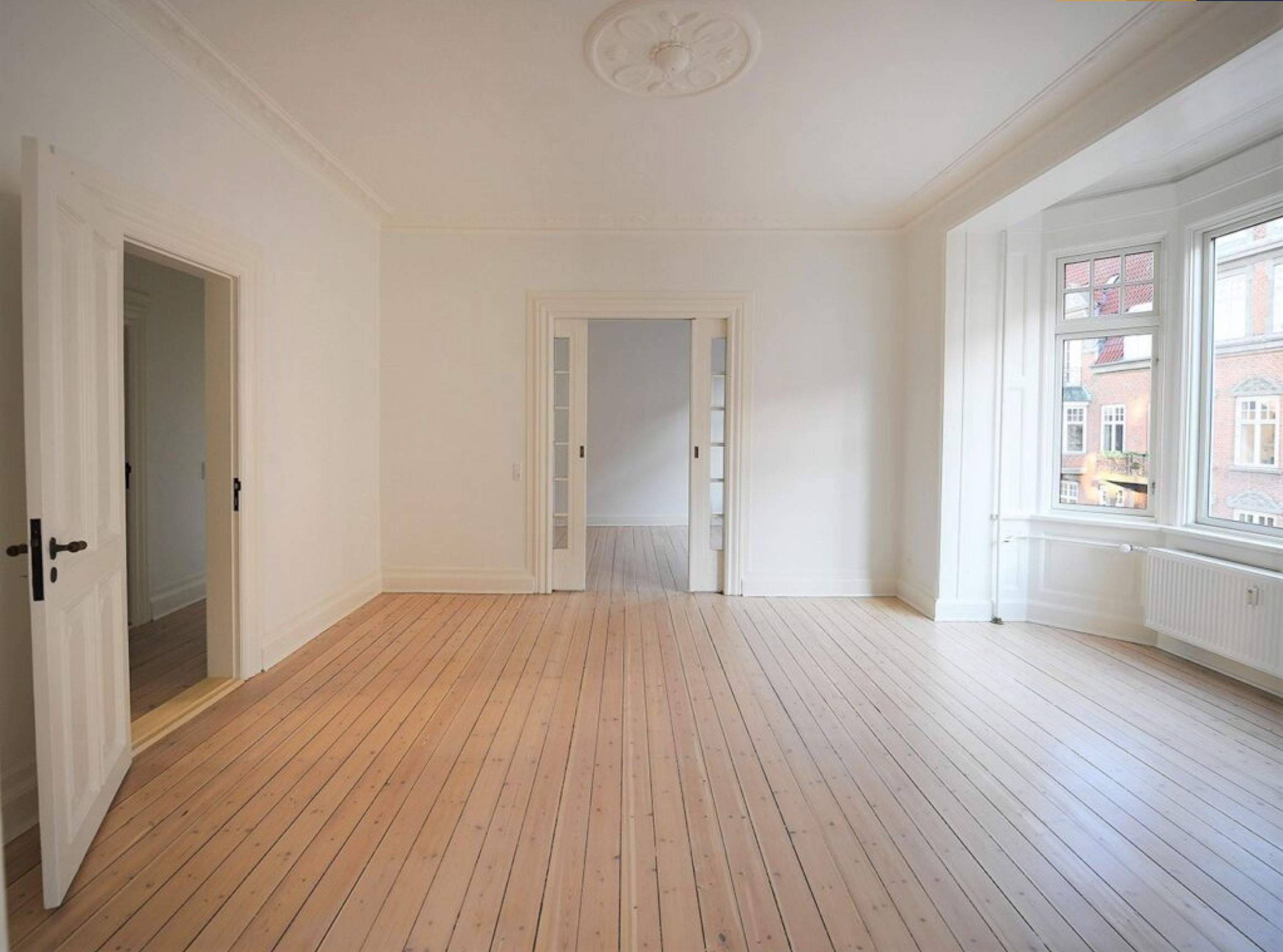 Smukt renoveret herskabslejlighed med altan og adgang til fælles tagterrasse. Lejligheden er med sine 138 kvadratmeter særdeles velindrettet og rummer i allerbedste herskabsstil 3 smukke lyse stuer én suite opdelt af skydedøre. Den ene stue er med hyggelig karnap mod Østerågade og kig til fjorden. Dejligt stort og lyst køkken med mulighed for lille spiseplads. Herudover er der endnu et godt værelse med skabe samt et lækkert badeværelse. Stort soveværelse med god skabsvæg og udgang til egen altan med smuk udsigt til Budolfi Kirke og det nyanlagte parkanlæg, Lommeparken. Lejligheden fremstår i utrolig flot stand med lækkert interiør fra Invita køkken, badeværelse samt i begge værelser. I stuer og værelser er der flot plankegulv.