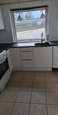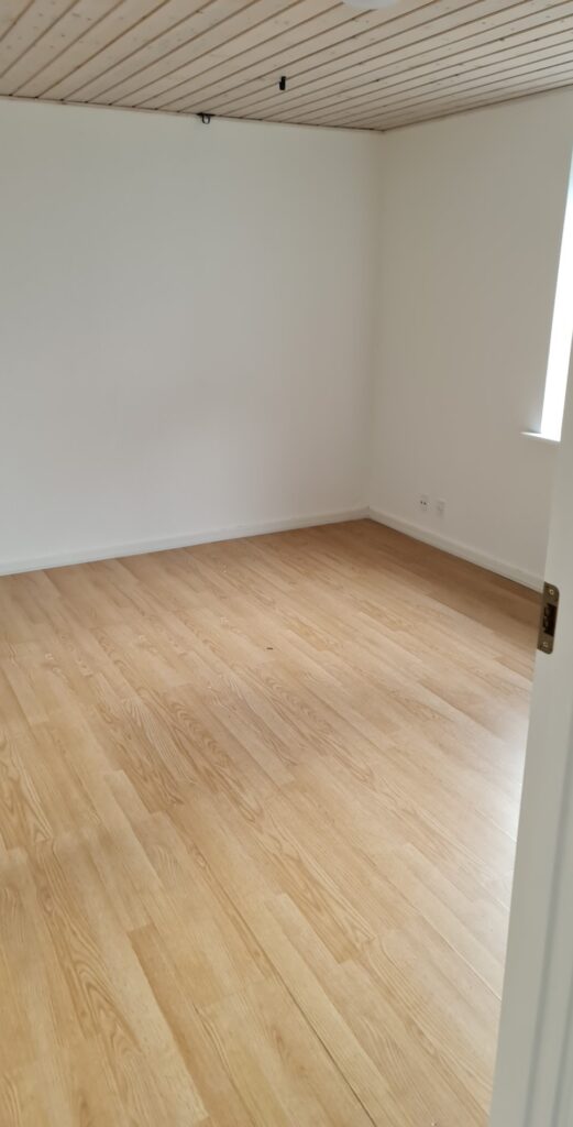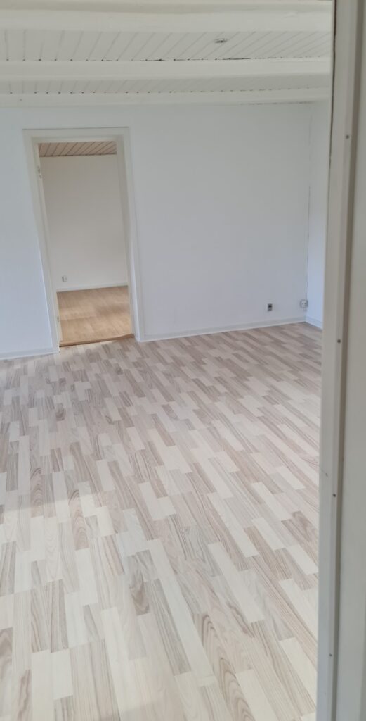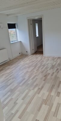 • Stor lys stue køkken med hygge krog og gulvvarme vaskemaskine og tørretumbler.