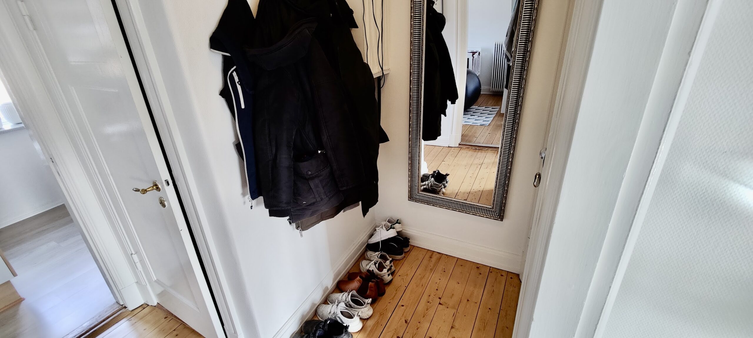 Der er heldigvis noget entré, så man har et sted til overtøj og sko.
