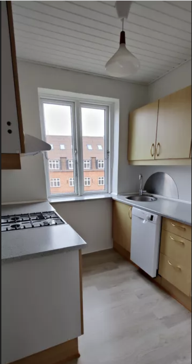 Til slut har vi så køkkenet, som er super fint og med mulighed for installering af opvaskemaskine. Den på billedet er nuværende lejers, som kan købes, hvis det ønskes.