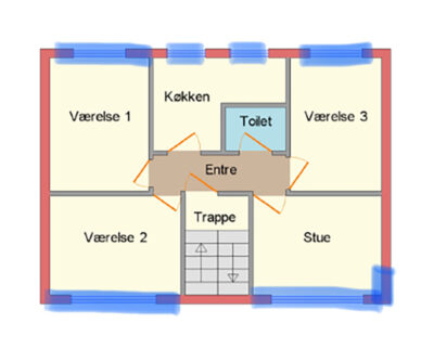 Tre gode værelser samt en stor stue. Stort køkken samt badeværelse.
