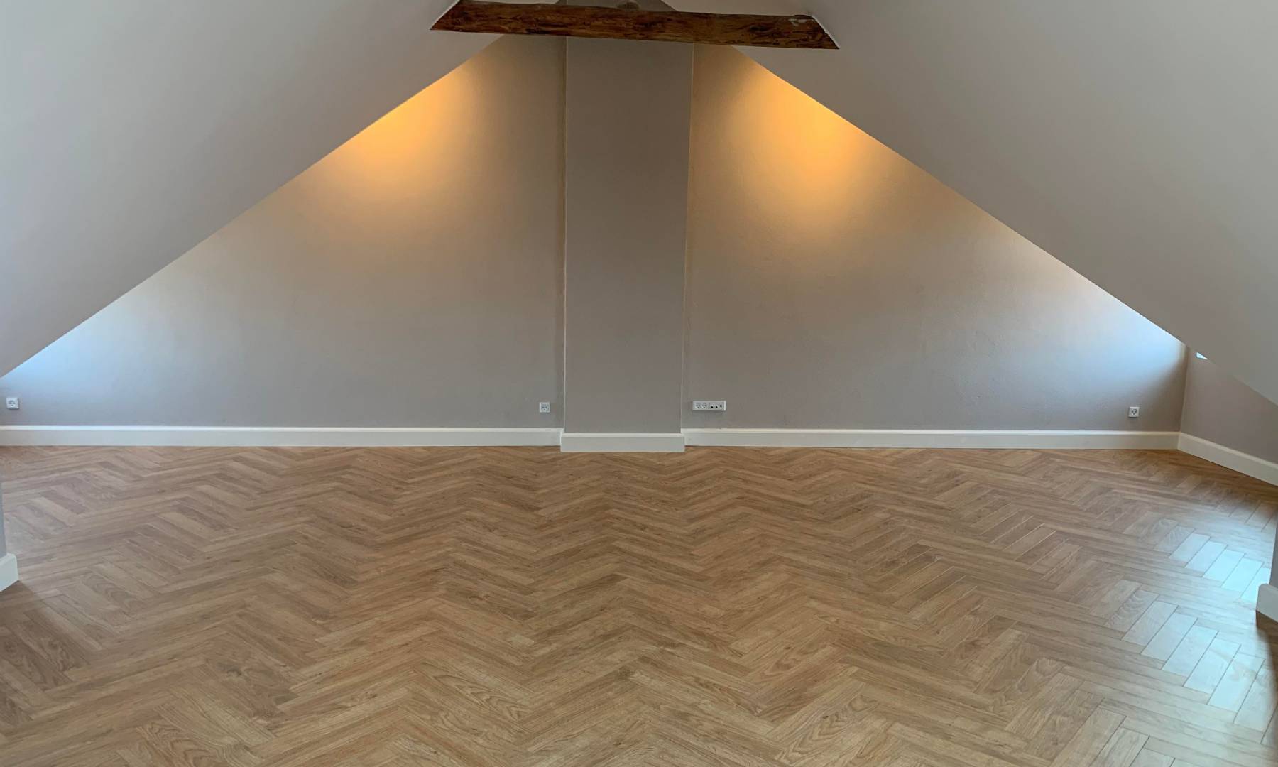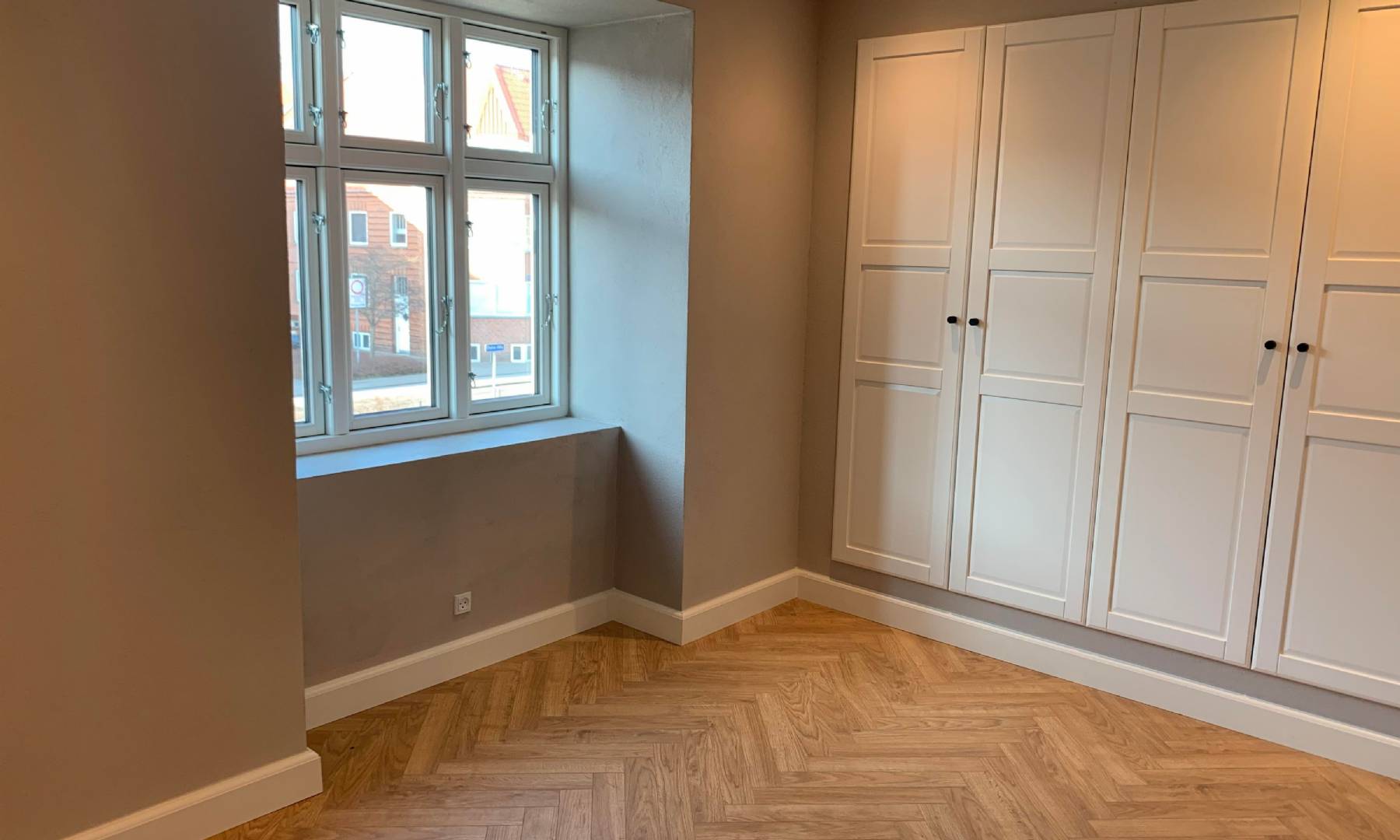 Her får man en lejlighed i top kvalitet og i lækre materialer. Lejligheden har et meget unikt og moderne look, der gør den anderledes end de fleste andre lejligheder i Aalborg. At den er opdelt i 2 plan bidrager også til at gøre lejligheden anderledes. Der er lagt sildebensparketgulv gennem hele lejligheden samt gulvvarme.