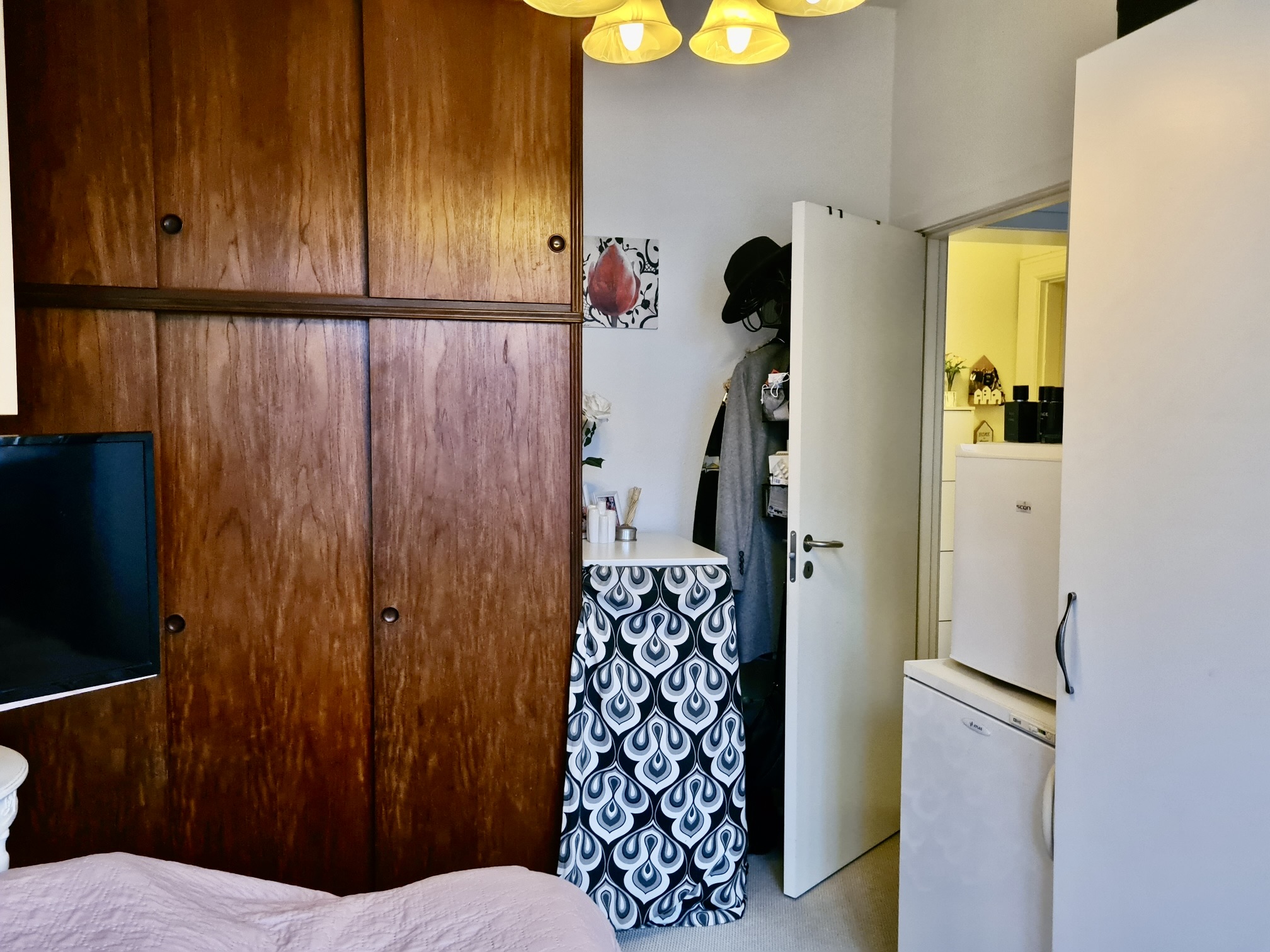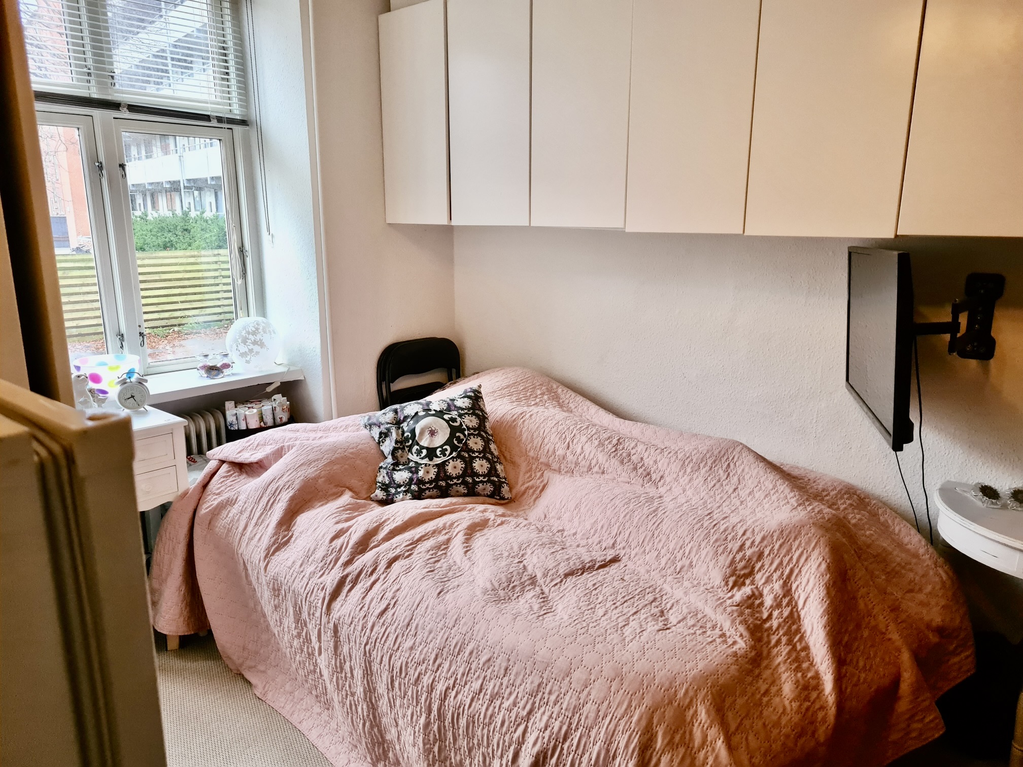 Til slut har vi et soveværelse med indbyggede skabe, og der er nemt plads til en dobbeltseng og lidt ekstra.