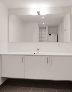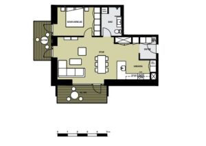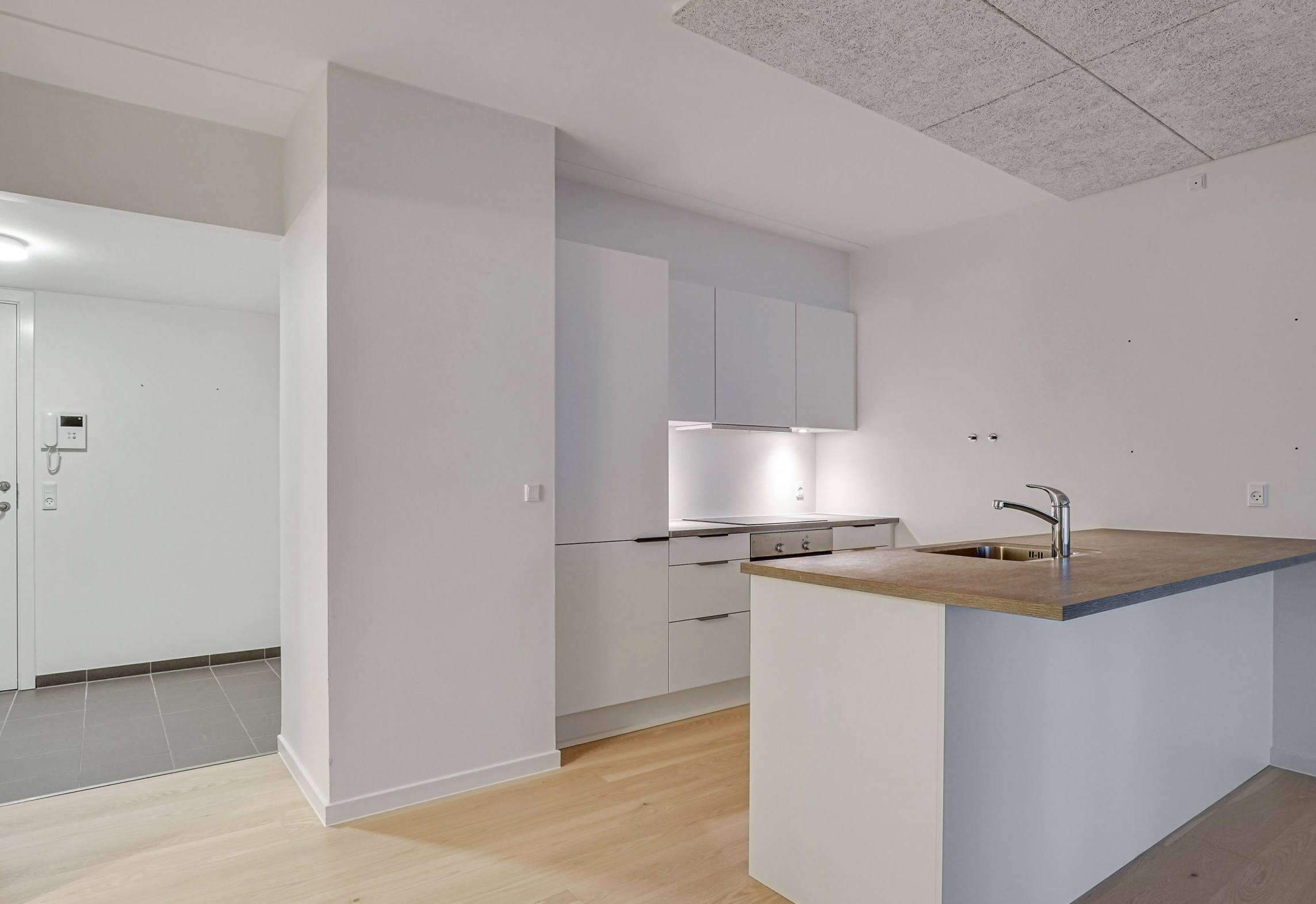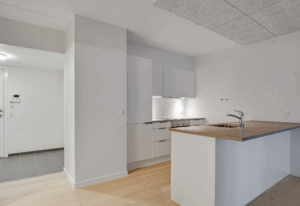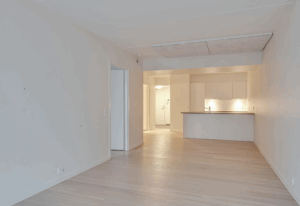 OBS: Billeder fra badeværelse og værelse er fra en lignende lejlighed og er udelukkende for at illustrere materialevalget. Se plantegning for korrekt indretning.