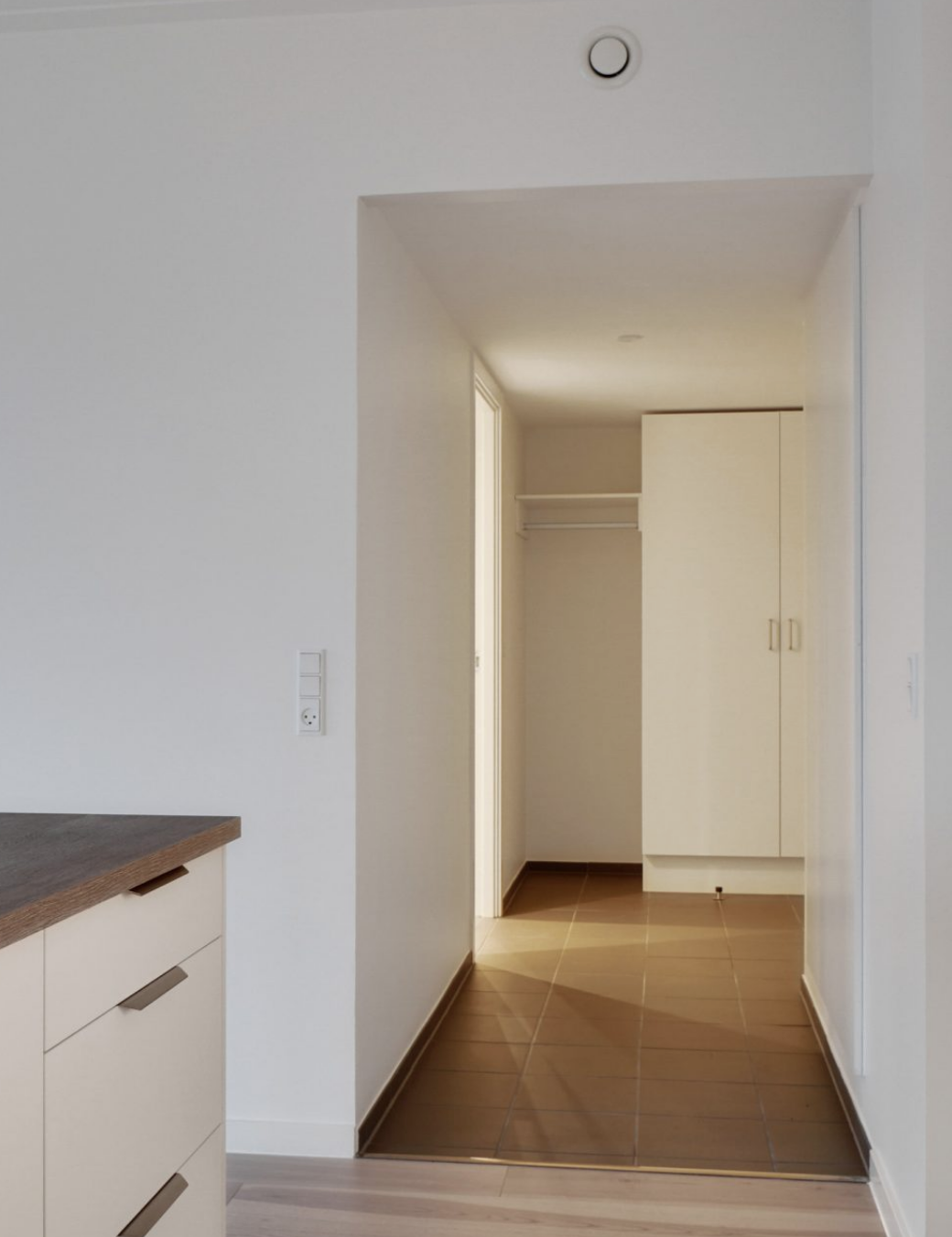 Denne lejlighed er en super lækker nybygget lejlighed med panoramaudsigt og to altaner. Lejligheden er bestående af en god entré med indbygget skabsplads, et stort badeværelse med vaskesøjle og separat bruseniche i gode materialer. Derudover er der et stort og rummeligt køkken alrum, hvor der er et stort køkken i hvide lækre materialer. Der er endda ved køkken-øen plads til barstole. Spisebordsområde og tv område er der også rigeligt med plads til. Desuden to gode værelser, hvor det ene har indbyggede skabe med plads til både dobbeltseng samt et mindre skrivebord.