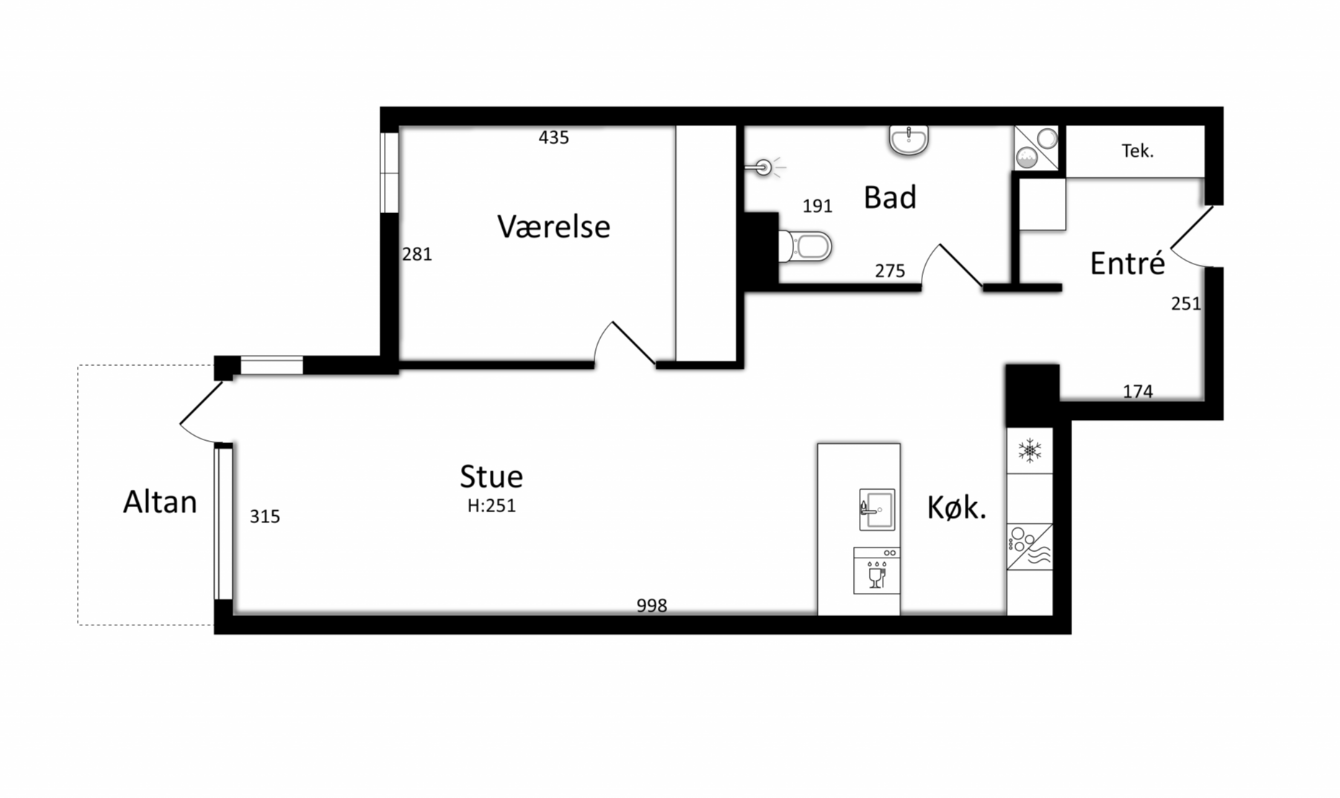Denne lejlighed er en super lækker nybygget lejlighed med havudsigt. Lejligheden er bestående af en god entré med indbygget skabsplads, et stort badeværelse med vaskesøjle og separat bruseniche i gode materialer. Derudover er der et stort og rummeligt køkken alrum, hvor der er et stort køkken i hvide lækre materialer. Der er endda ved køkken-øen plads til barstole. Spisebordsområde og tv område er der også rigeligt med plads til. Soveværelset er med indbyggede skabe og man kan både have en dobbeltseng samt et mindre skrivebord. Lejligheden har også en altan.
