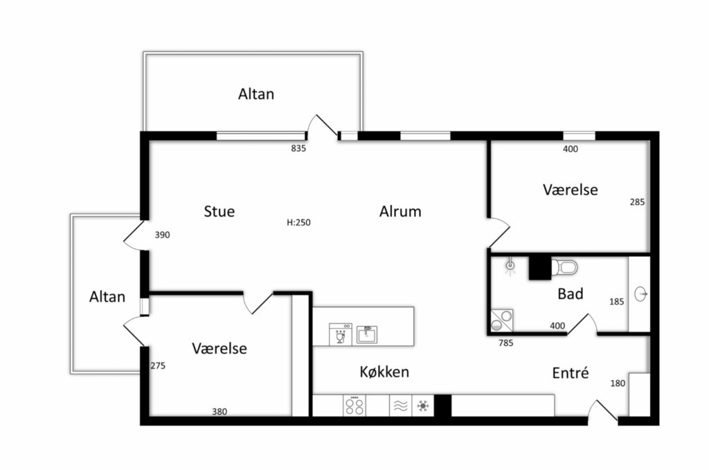 Gennemgående er alt nyt i lejlighederne og der er store vinduer næsten fra gulv til loft.