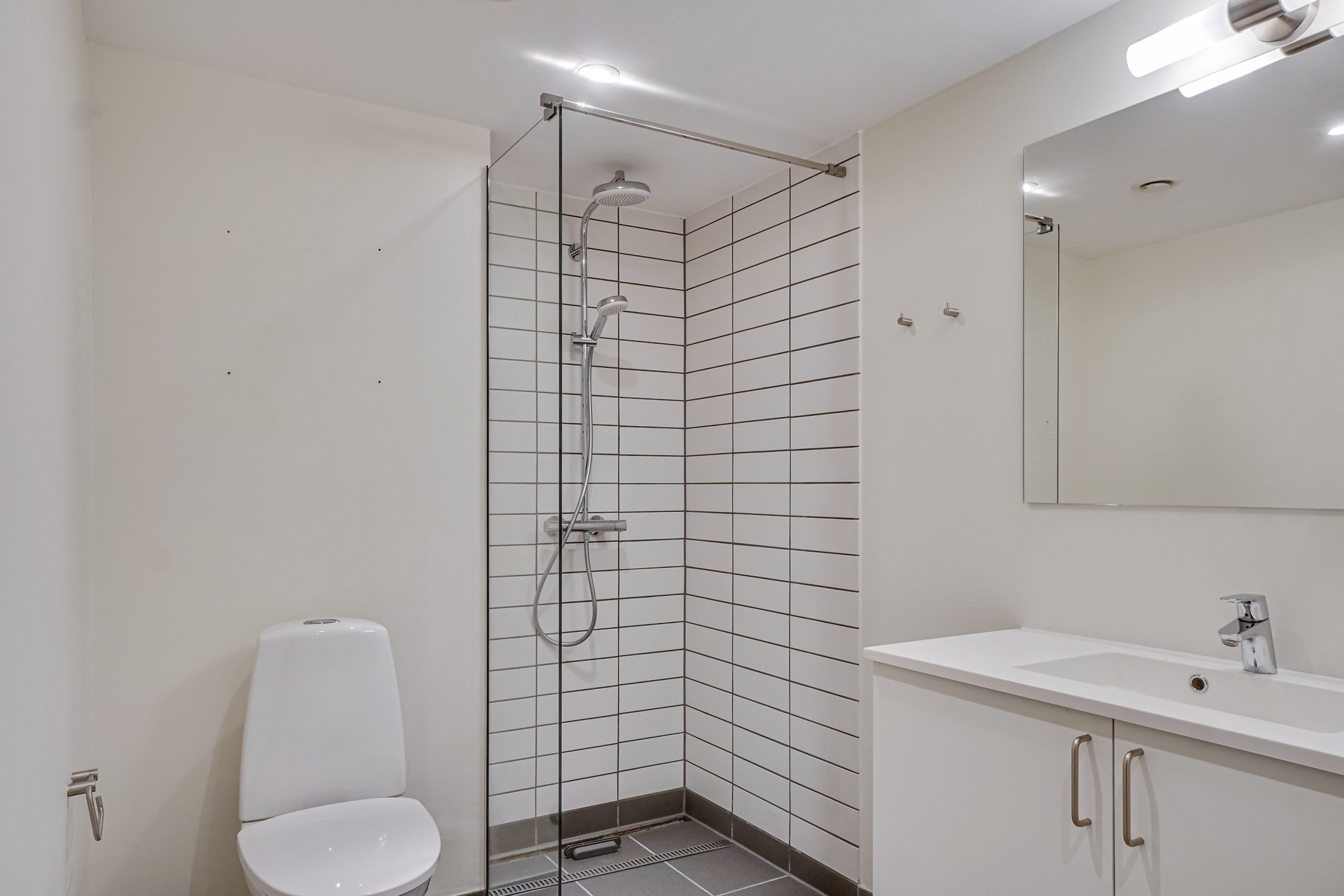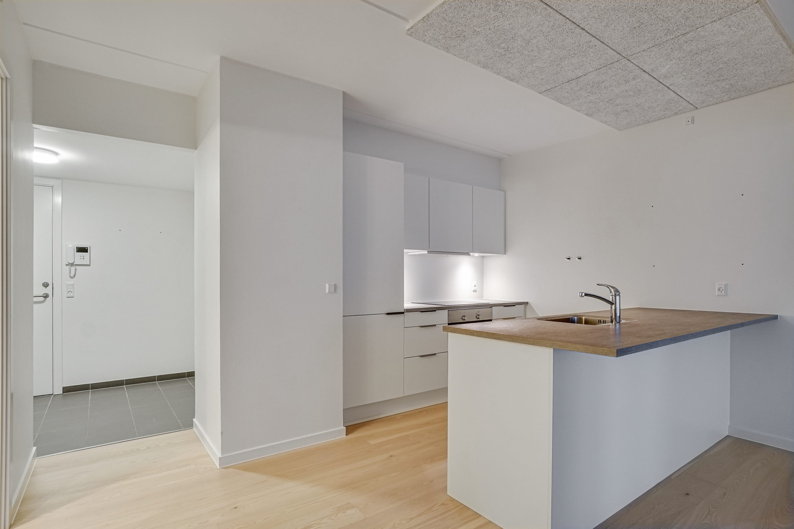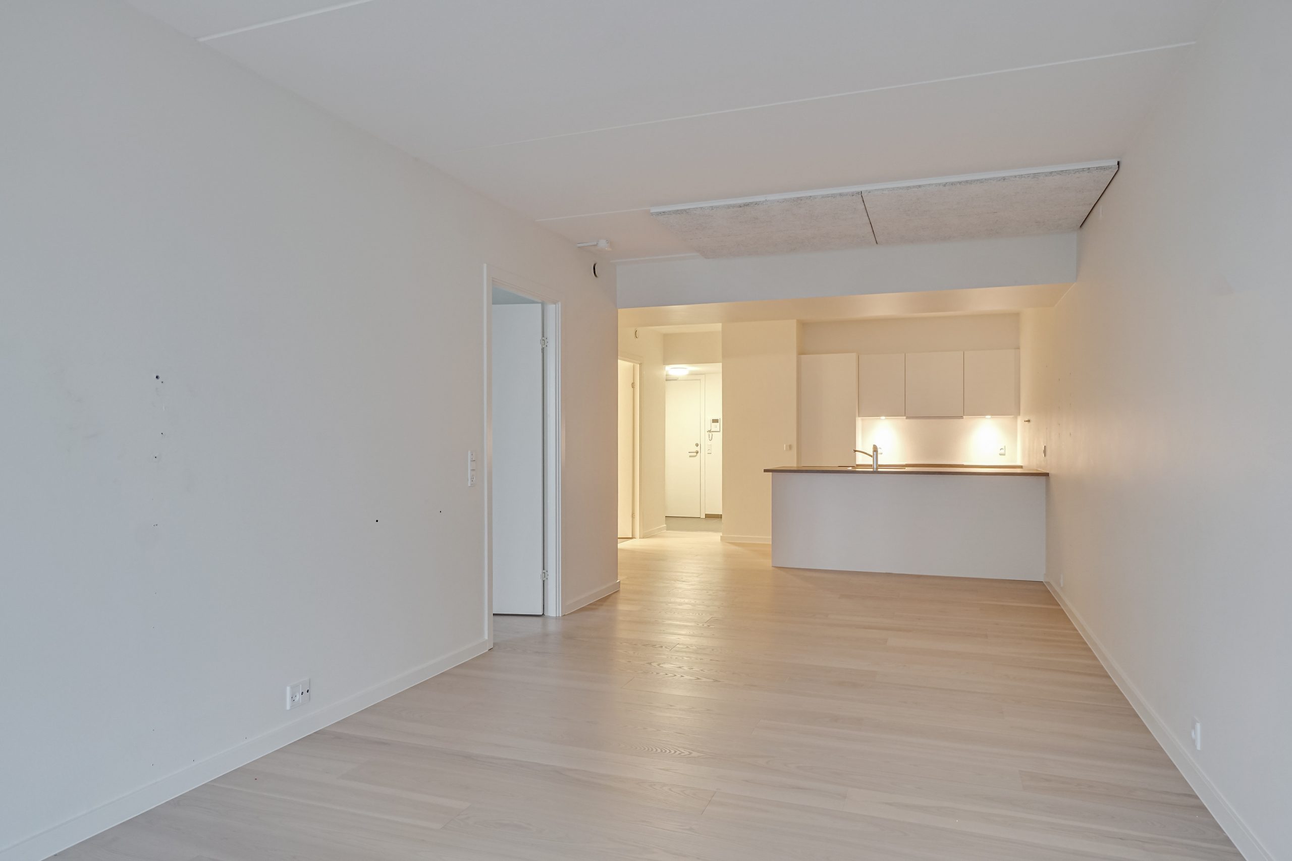 Køkkenet er moderne udstyret og indbyder til madlavning med sine smukke materialer. Badeværelset er stilrent og funktionelt, hvilket tilføjer en ekstra dimension til boligens kvalitet. Generelt fremstår hele lejligheden nymalet og med nye gulve, hvilket giver en frisk og indbydende fornemmelse.