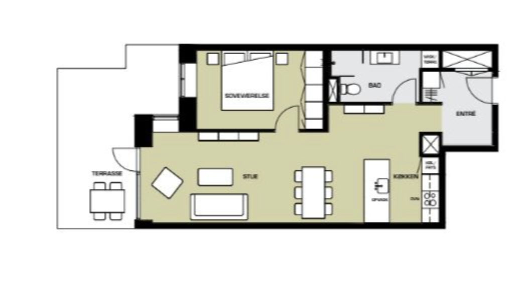 Denne lejlighed er en super lækker nybygget lejlighed med fjordkig. Lejligheden er bestående af en god entré med indbygget skabsplads, et stort badeværelse med vaskesøjle og separat bruseniche i gode materialer. Derudover er der et stort og rummeligt køkken alrum, hvor der er et stort køkken i hvide lækre materialer. Der er endda ved køkken-øen plads til barstole. Spisebordsområde og tv område er der også rigeligt med plads til. Soveværelset er med indbyggede skabe og man kan både have en dobbeltseng samt et mindre skrivebord.