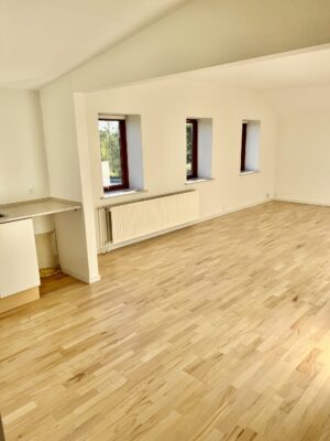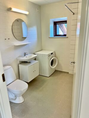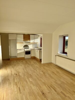 Denne lejlighed er nyistandsat og har et lyst og rummeligt køkken alrum. Udover det store køkken alrum, som nemt rummer både spisestue og tvstue, er der et badeværelse med en vaskemaskine. I køkkenet kan man installere en opvaskemaskine. Der er fra vinduerne en flot grøn udsigt.