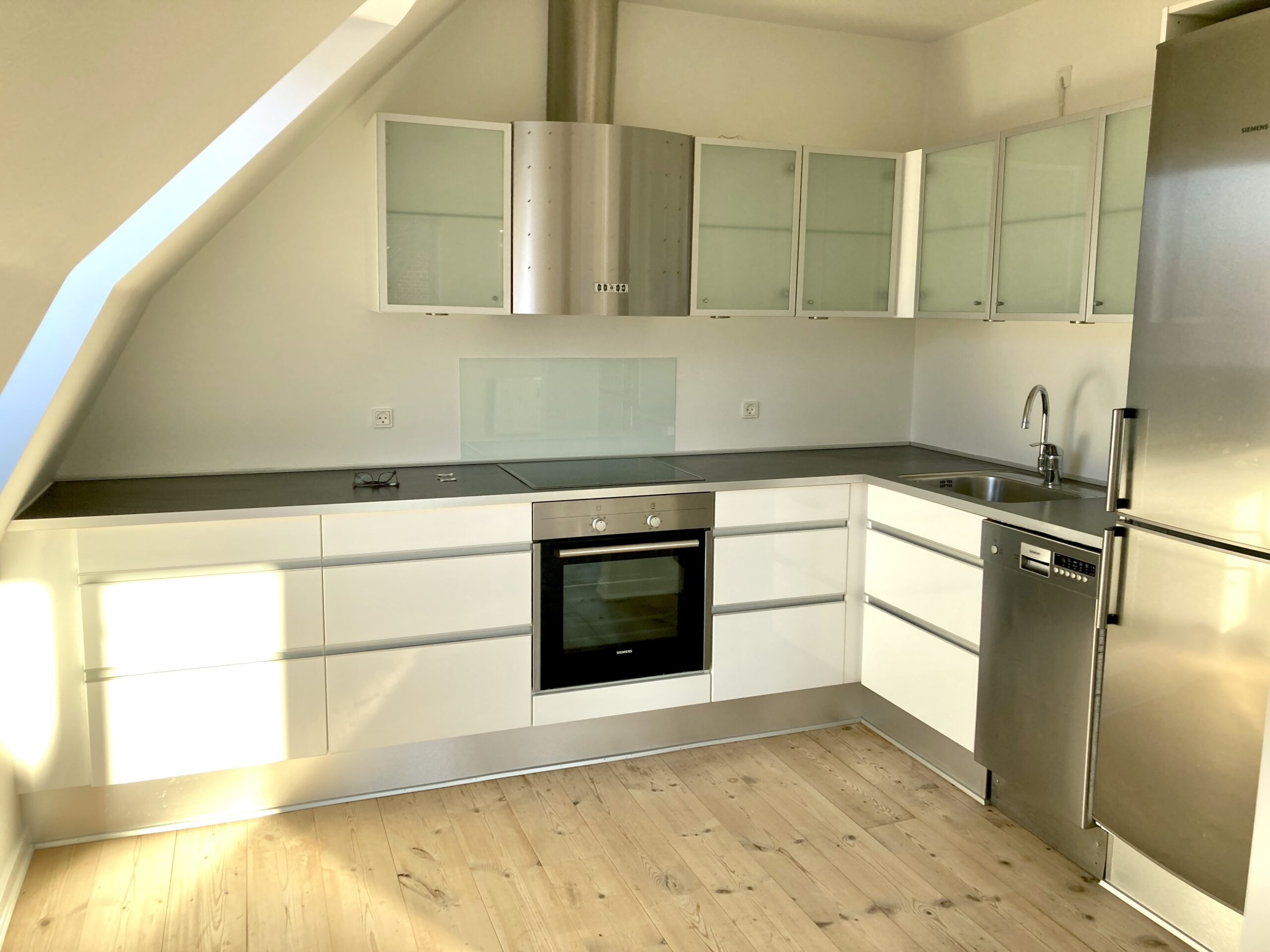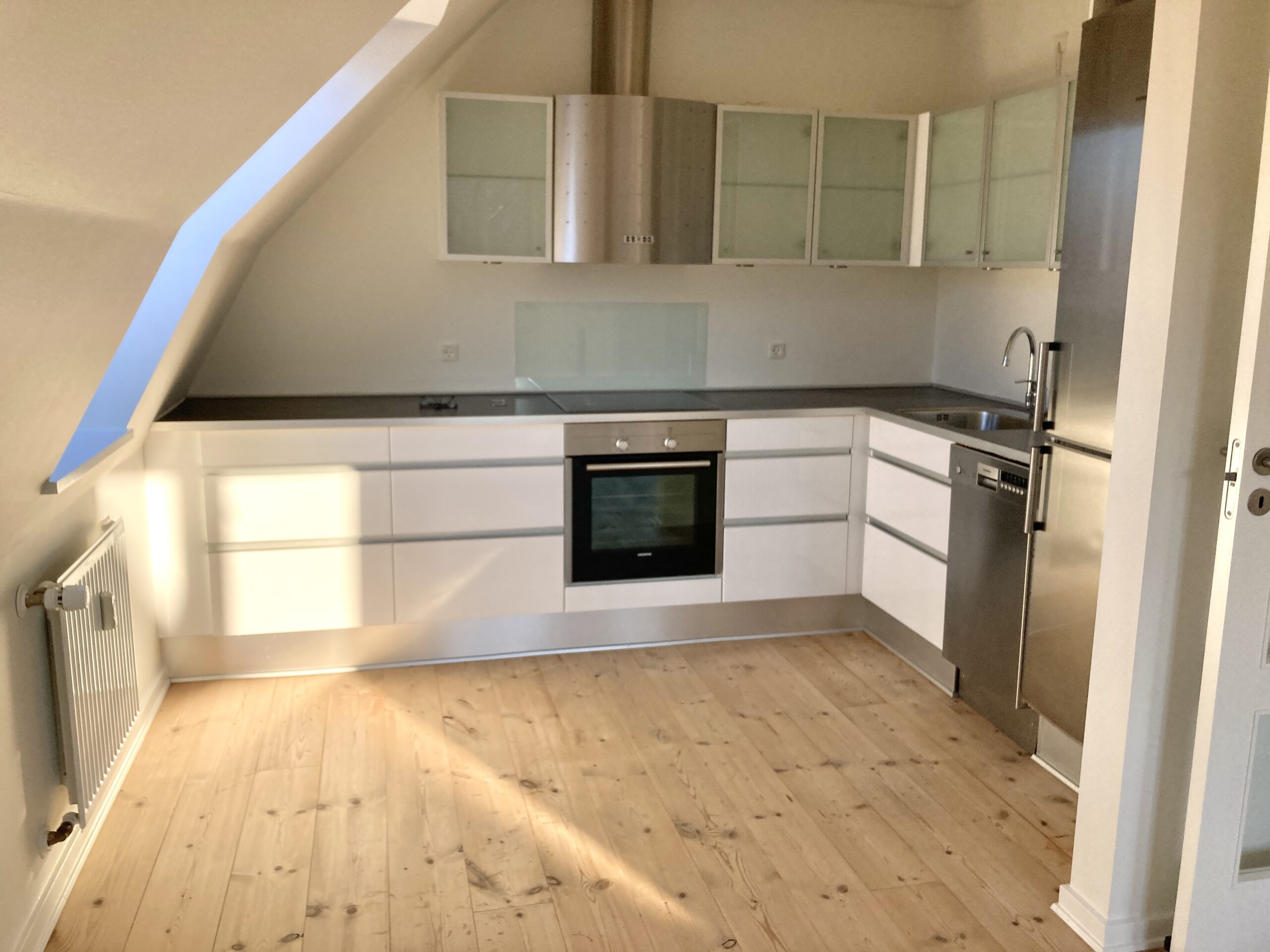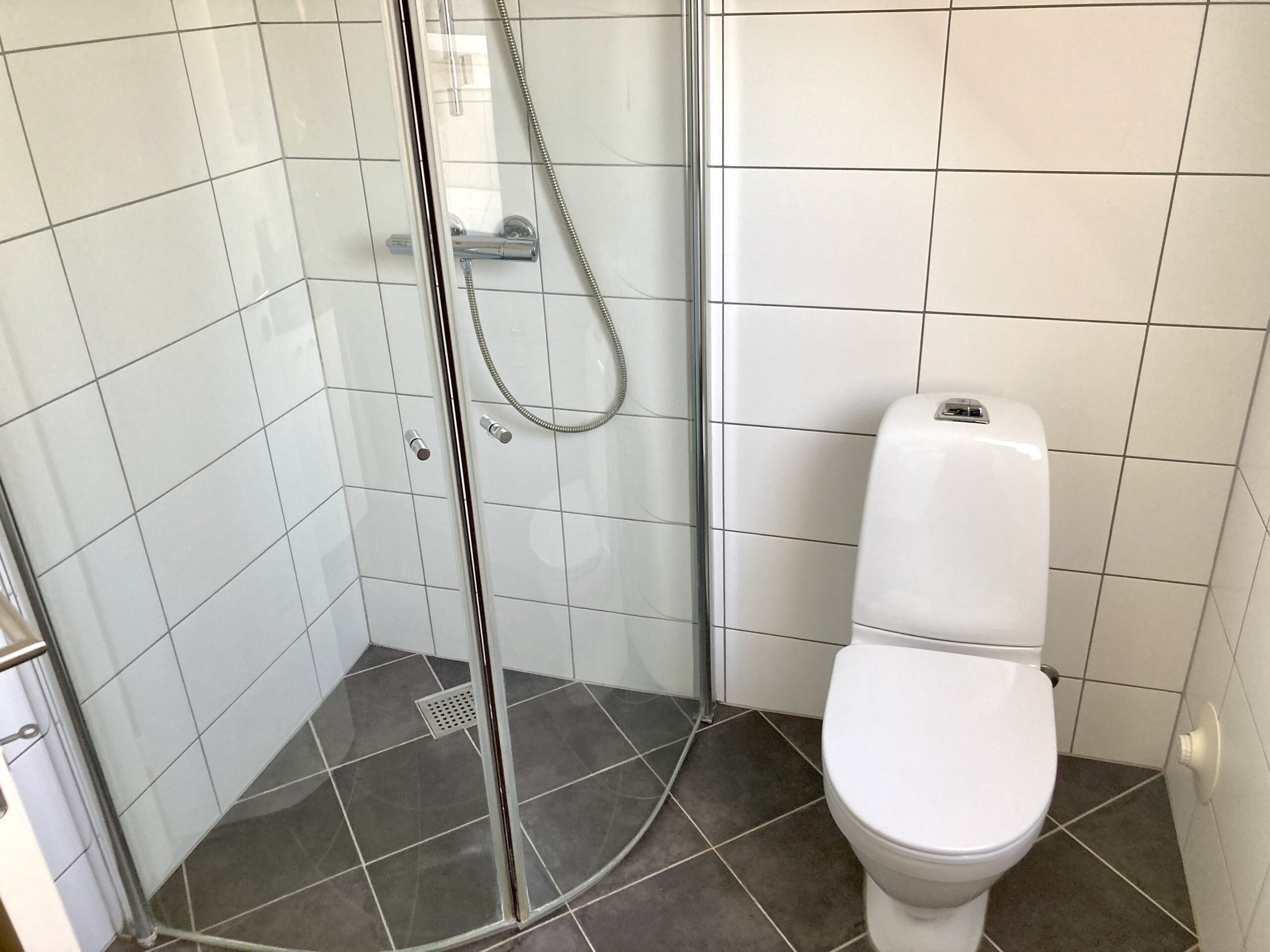 Lejligheden byder på en god entré, der fører til et rummeligt badeværelse med brus. Det nye højglans køkken er udstyret med alle hårde hvidevarer, herunder en praktisk opvaskemaskine, og er i åben forbindelse med den dejlige, lyse stue. Det godt størrelse soveværelse giver mulighed for ro og afslapning, og de lakerede gulve tilfører en elegant finish til boligen.