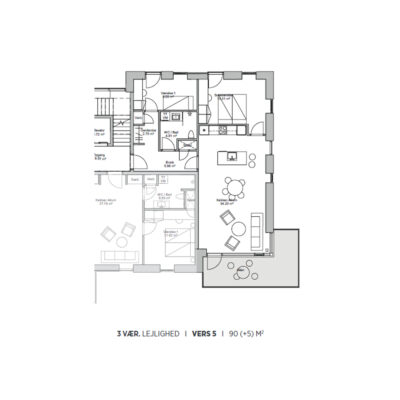 Herudover store opholdsrum med udgang til meget store syd- eller vestvendt terrasse eller altan.