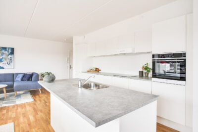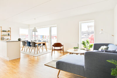 Lejlighederne er bygget i høj kvalitet med blandt andet Svane køkken og en fuld hvidevare pakke og trægulve. Herudover store opholdsrum med udgang til meget store syd- eller vestvendt terrasse eller altan.