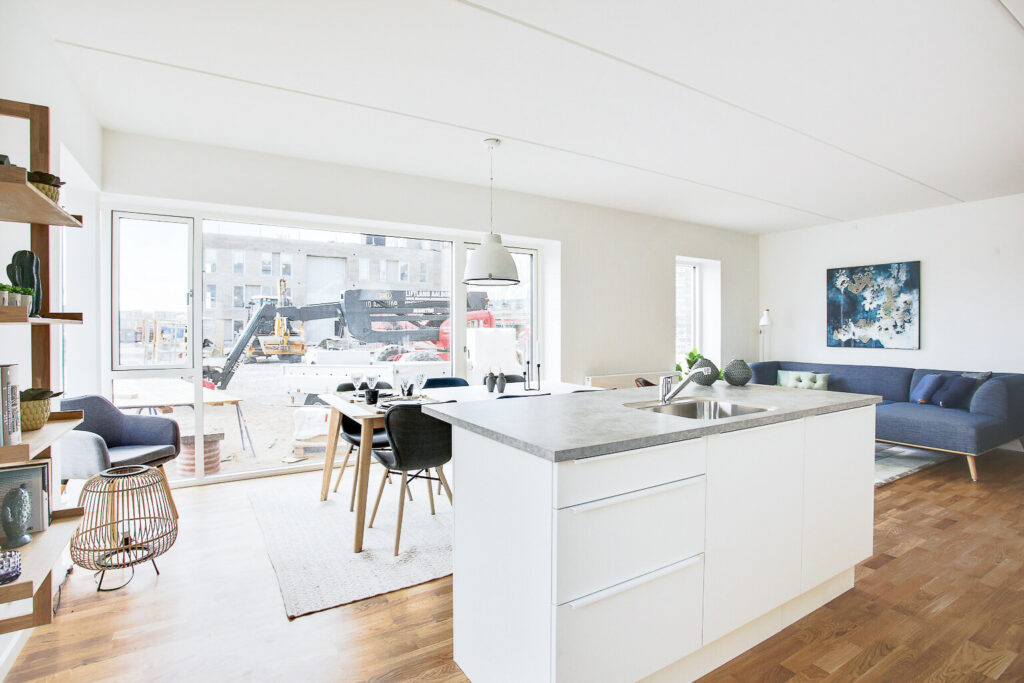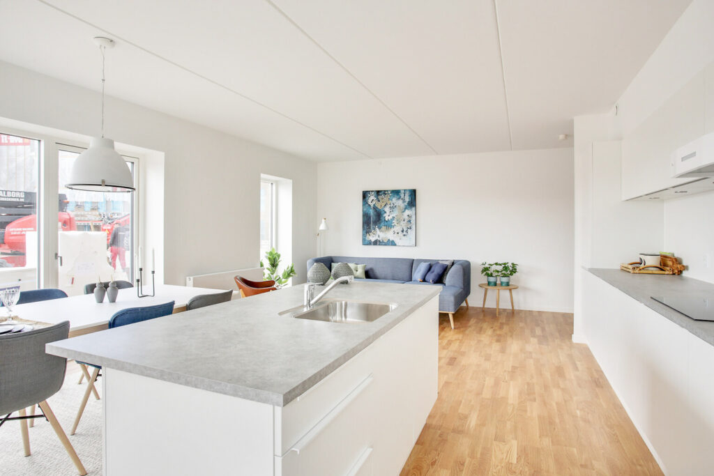 OBS! Billederne er af en prøvebolig, og er brugt for at illustrere materialevalg og udseende. Se plantegninger for indretning.