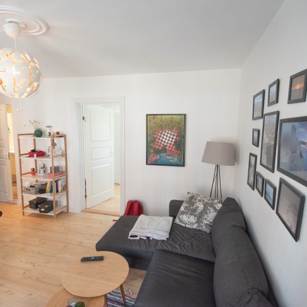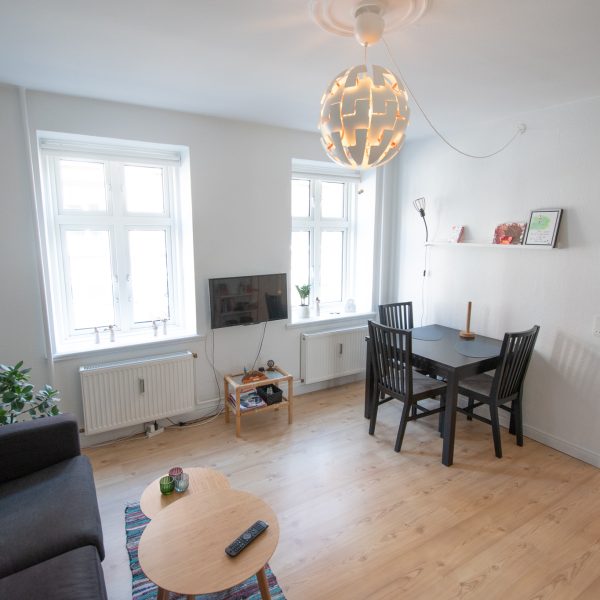 Velkommen til en stilren og velholdt lejlighed, hvor moderne komfort og gode materialevalg går hånd i hånd. Lejligheden er gennemmoderniseret og byder på alt, hvad man har brug for i hverdagen – lige fra et flot køkken til et rummeligt badeværelse med gulvvarme.