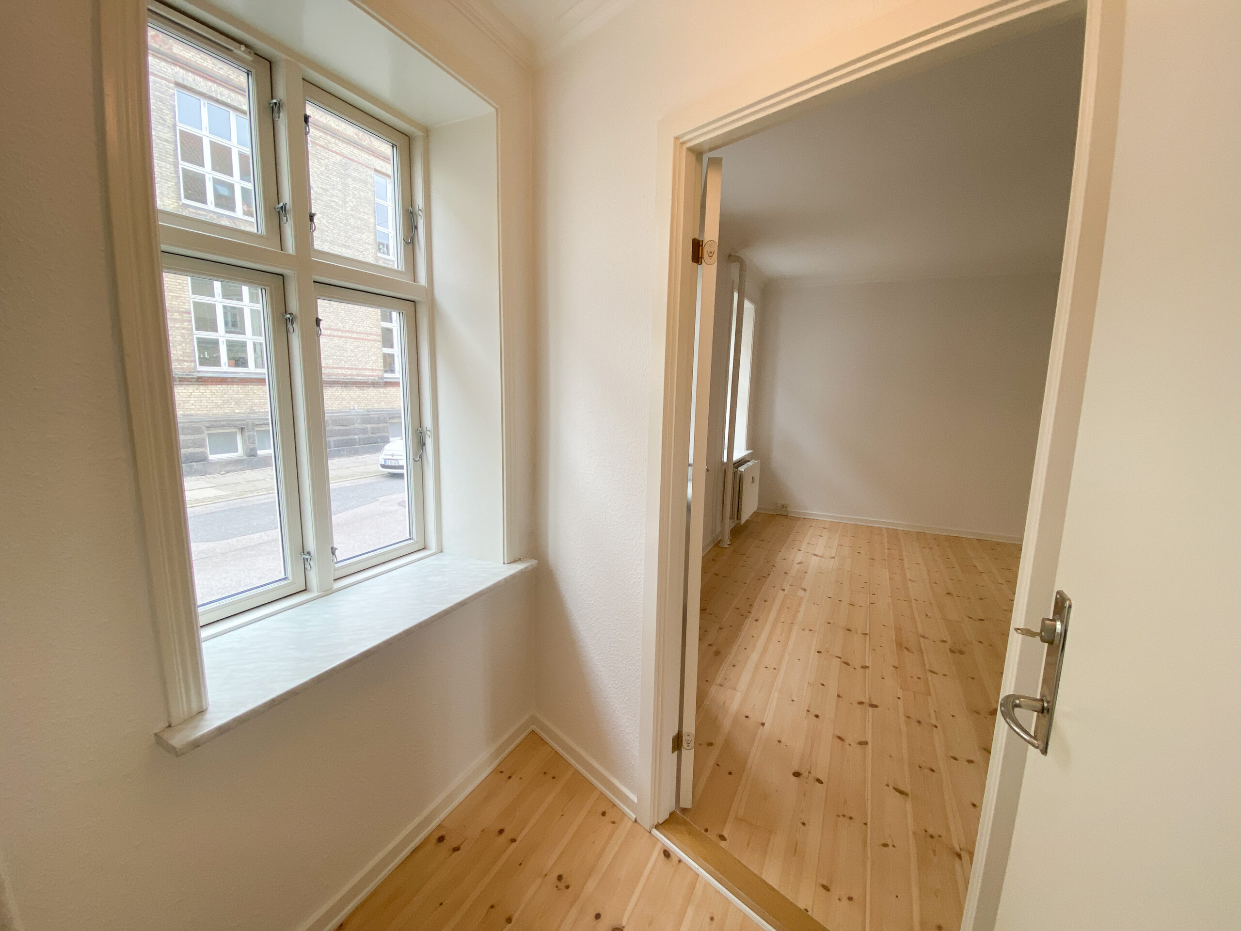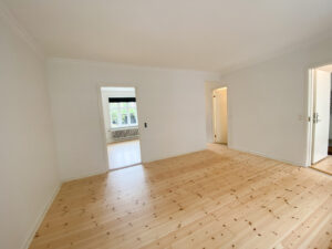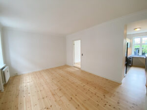 Lejligheden fremstår nymalet og med nyafhøvlede gulve, som er lakerede og giver hjemmet et lyst og stilrent udtryk. Her får du en bolig, der er lige til at flytte ind i – uden at skulle tænke på istandsættelse.