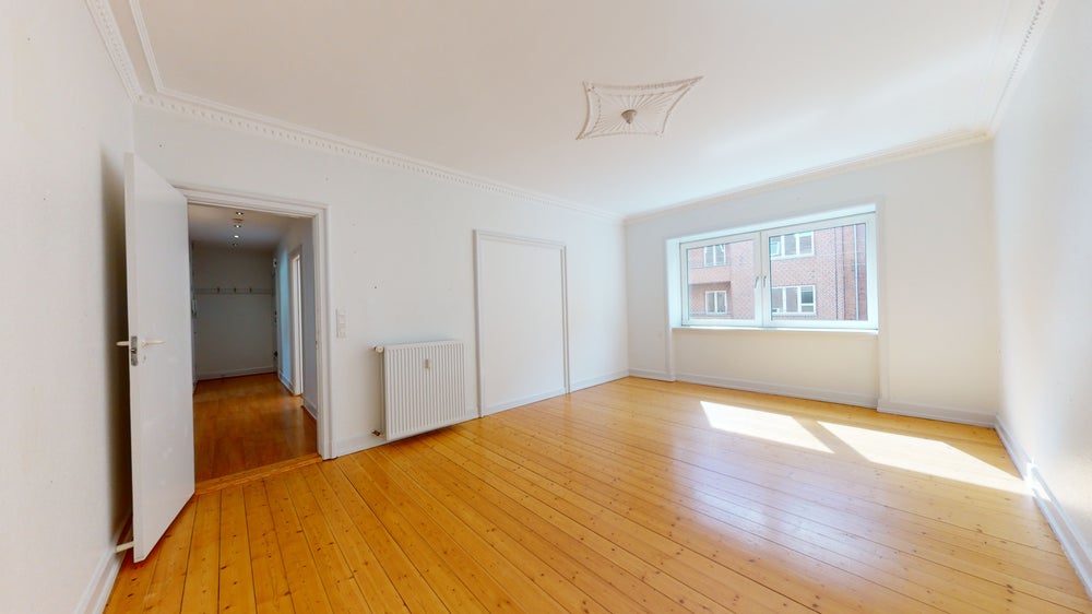 Lejligheden byder på tre gode værelser, der giver mulighed for både afslapning og arbejde. De store vinduer lader lyset strømme ind og skaber en varm og indbydende stemning. Stuen er rummelig og ideel til hyggelige stunder med familie og venner, mens værelserne tilbyder privatliv og ro. Den åbne planløsning giver en naturlig forbindelse mellem rummene, hvilket gør det nemt at bevæge sig rundt.