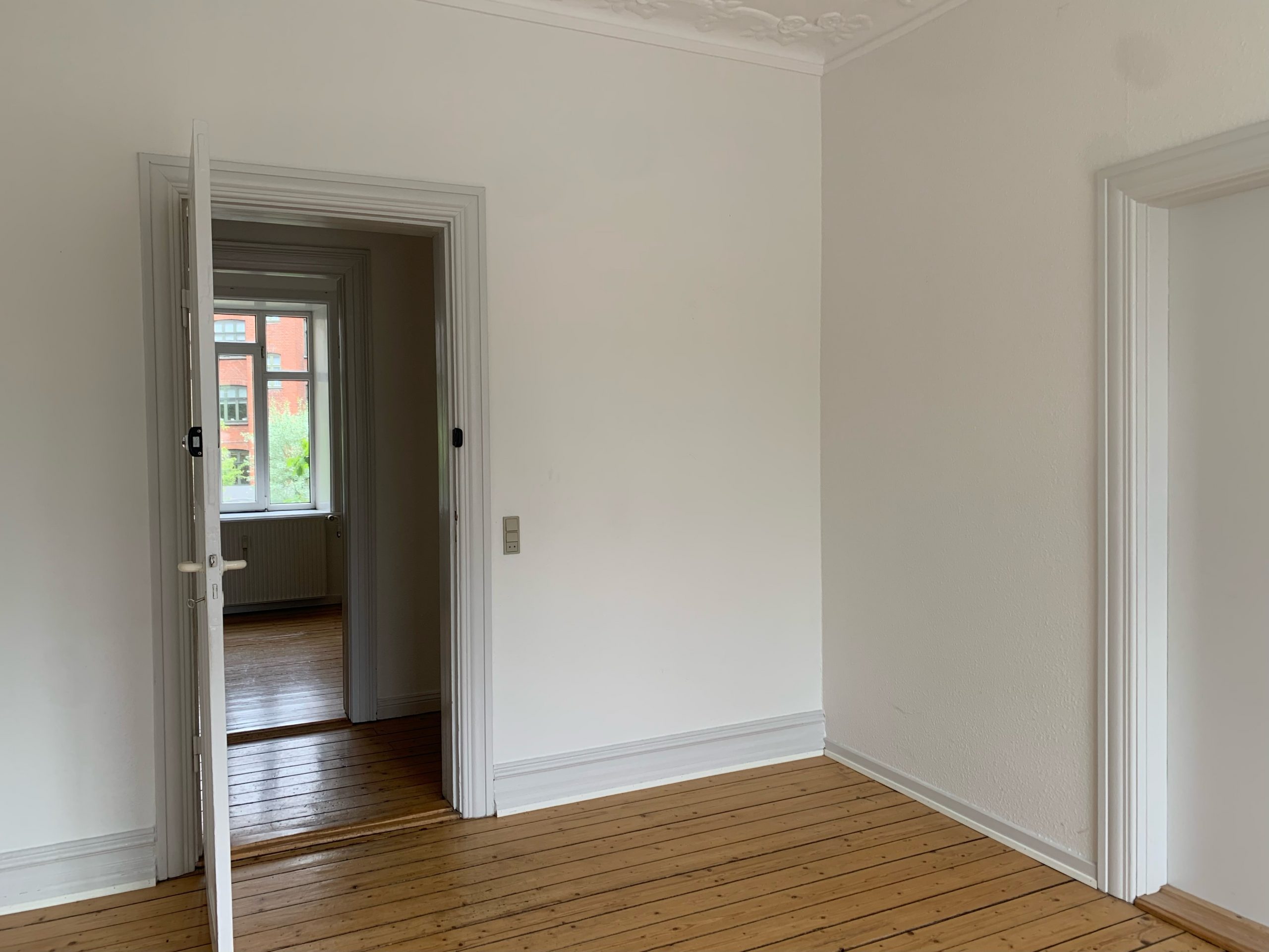 Lejligheden byder på fire rummelige værelser, der skaber en harmonisk planløsning, perfekt til både afslapning og sociale aktiviteter. De store vinduer lader det naturlige lys strømme ind og giver en imødekommende stemning. Her er der plads til både liv og leg.