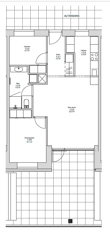 Lækker og lys lejlighed beliggende på Provstejorden med stor altan mod syd med udsigt ud over Changs baner.