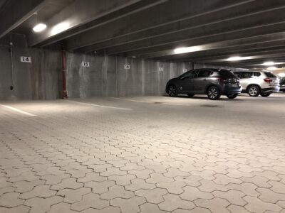 Parkeringskælderen er aflåst hele døgnet og der er til parkeringskælderen installeret briksystem som adgangsnøgle.