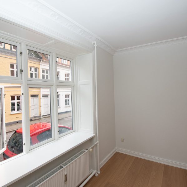 De to soveværelser er rummelige og har flotte detaljer, der skaber en hyggelig og stilfuld atmosfære.