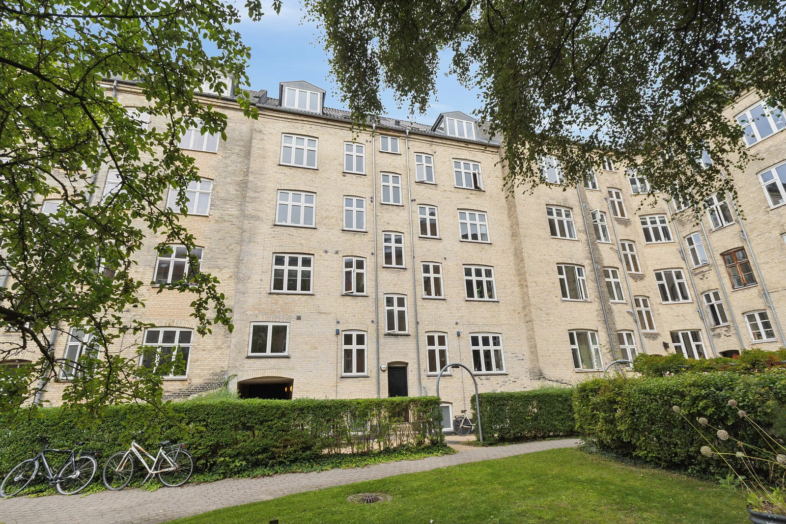 En klassisk murstensejendom med adgang til et velplejet, grønt gårdmiljø, der byder på stisystemer, opholdspladser og cykelparkering. Et dejligt åndehul midt i byen, hvor du kan nyde de stille stunder.