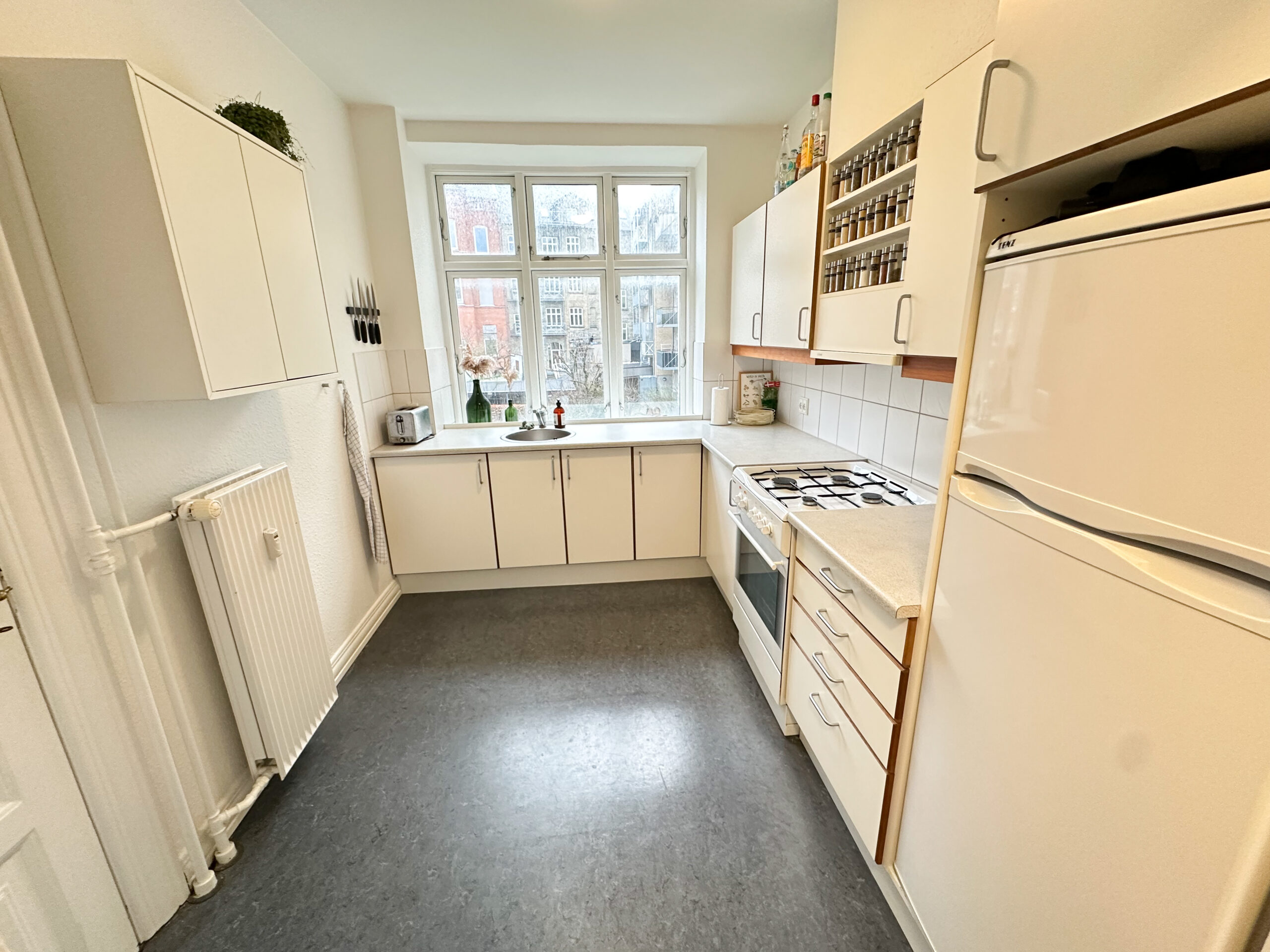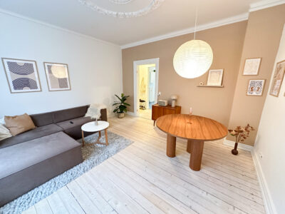 Denne lyse og charmerende 2-værelses lejlighed ligger i hjertet af Aalborg, på den eftertragtede Rantzausgade, hvor du har kort afstand til alt, hvad byen har at byde på – fra indkøb og caféer til Kennedy og banegården. En perfekt beliggenhed for den, der ønsker at kombinere byliv med ro.