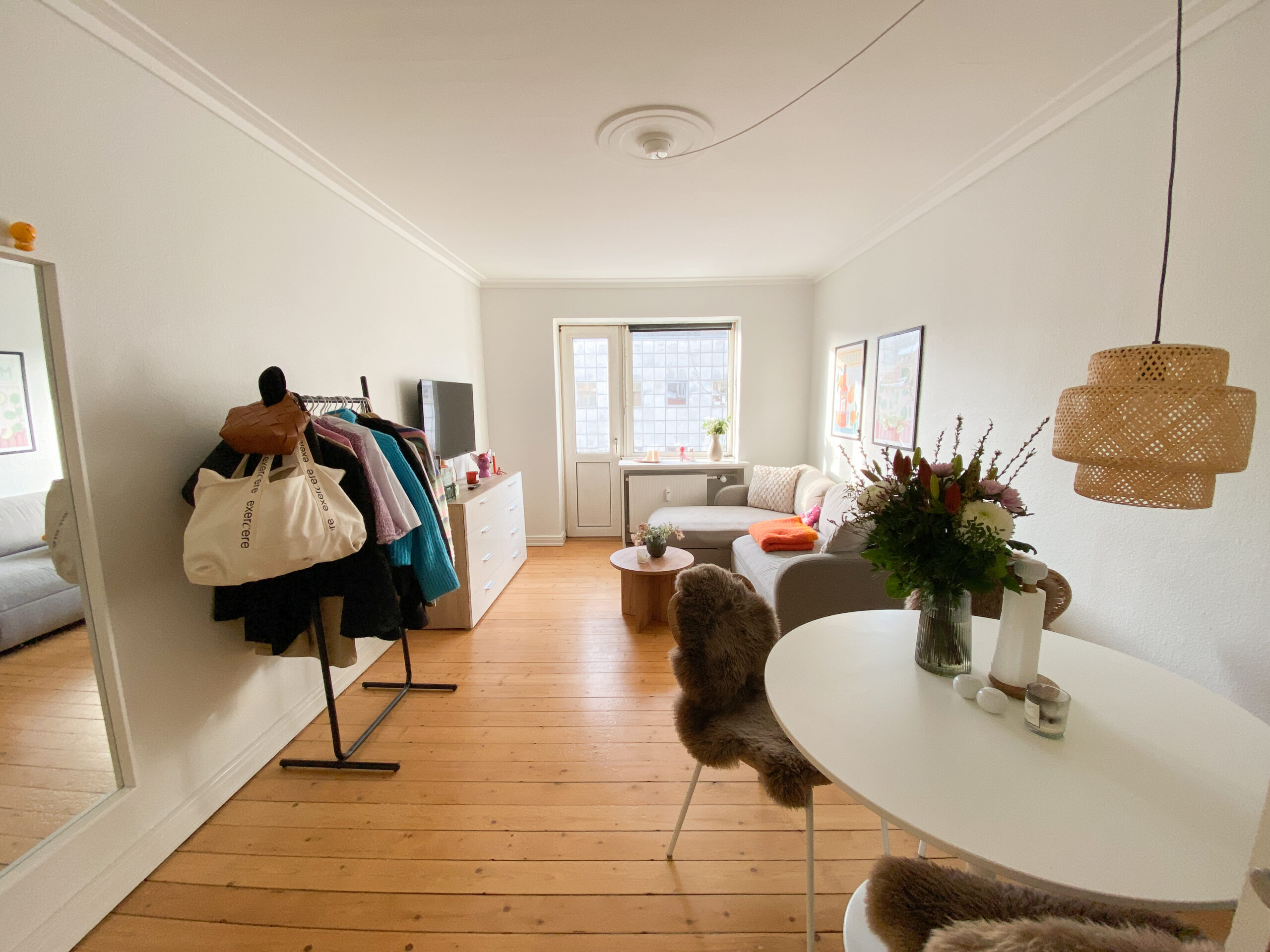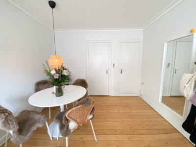 Til sidst har vi lejlighedens værelse, som er et godt rum med flotte gulve. Det er nemt at indrette, så man godt kan have lidt af hvert derinde. Herfra er der også en udgang til en lille altan.