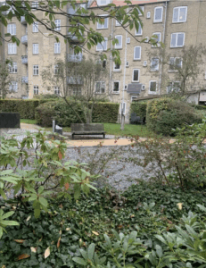 I Ejendommen er der fælles vaskeri, kælderrum og et fælles gårdanlæg.