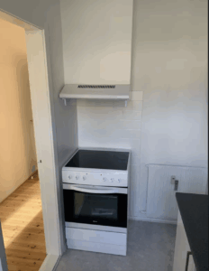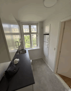 Lejligheden har netop fået nye lofter, samt køkken og bad er renoveret.