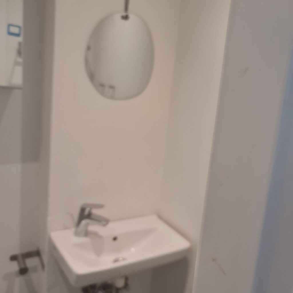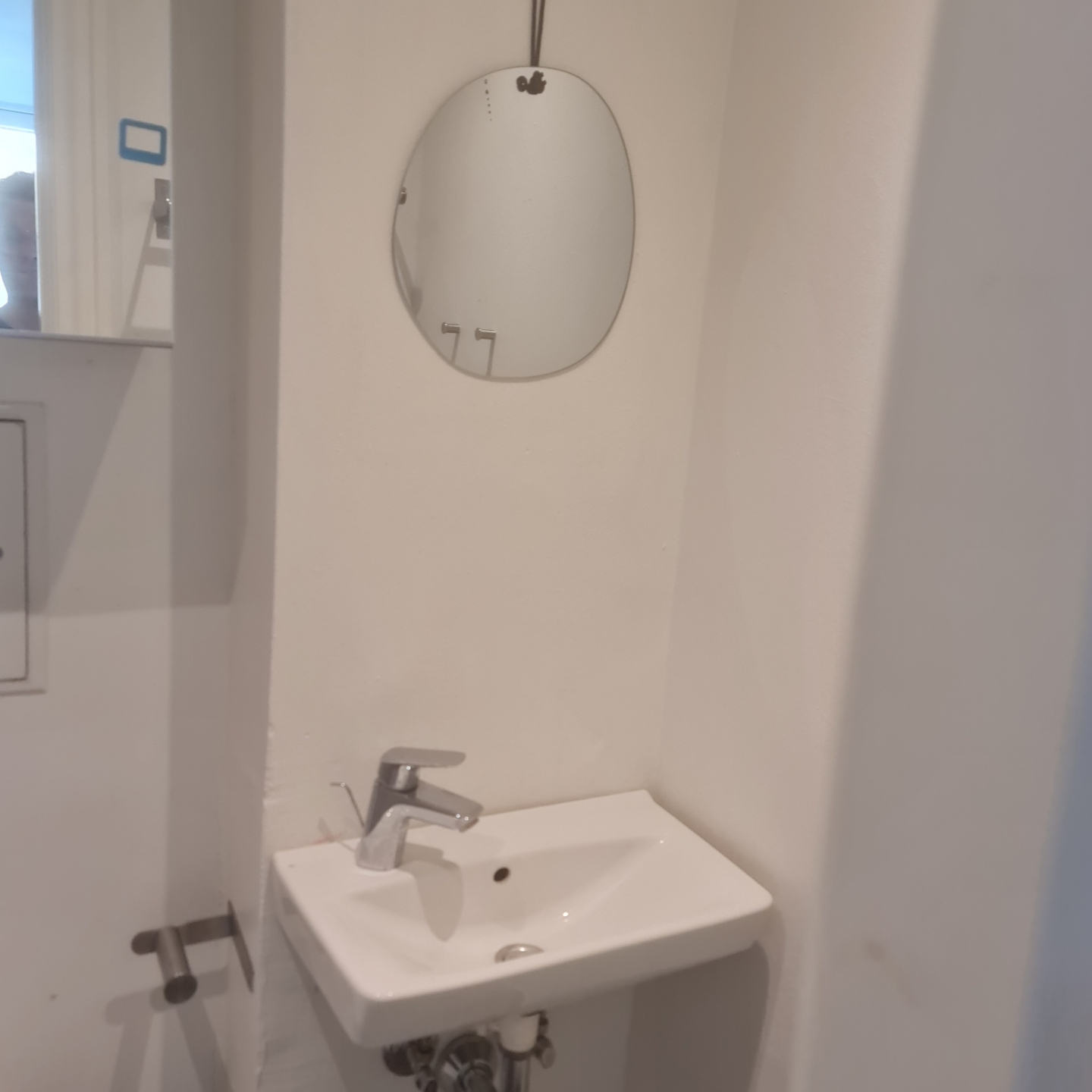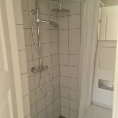 Lejligheden indeholder en lille entre, kombineret køkken/stue, badeværelse og soveværelse.