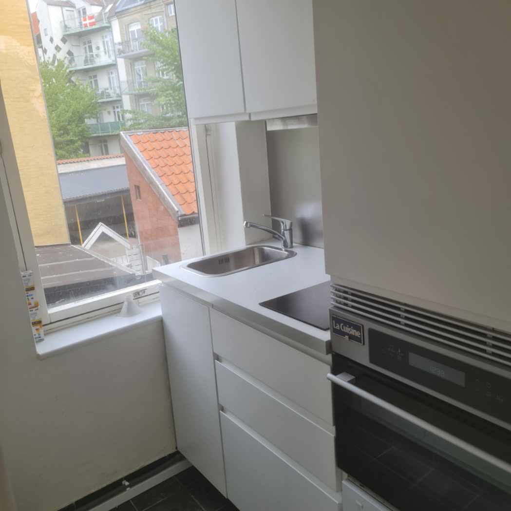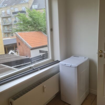 Lejligheden er udstyret med: Komfur, køleskab, fryser, opvaskemaskine, emhætte og vaskemaskine.