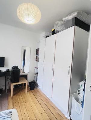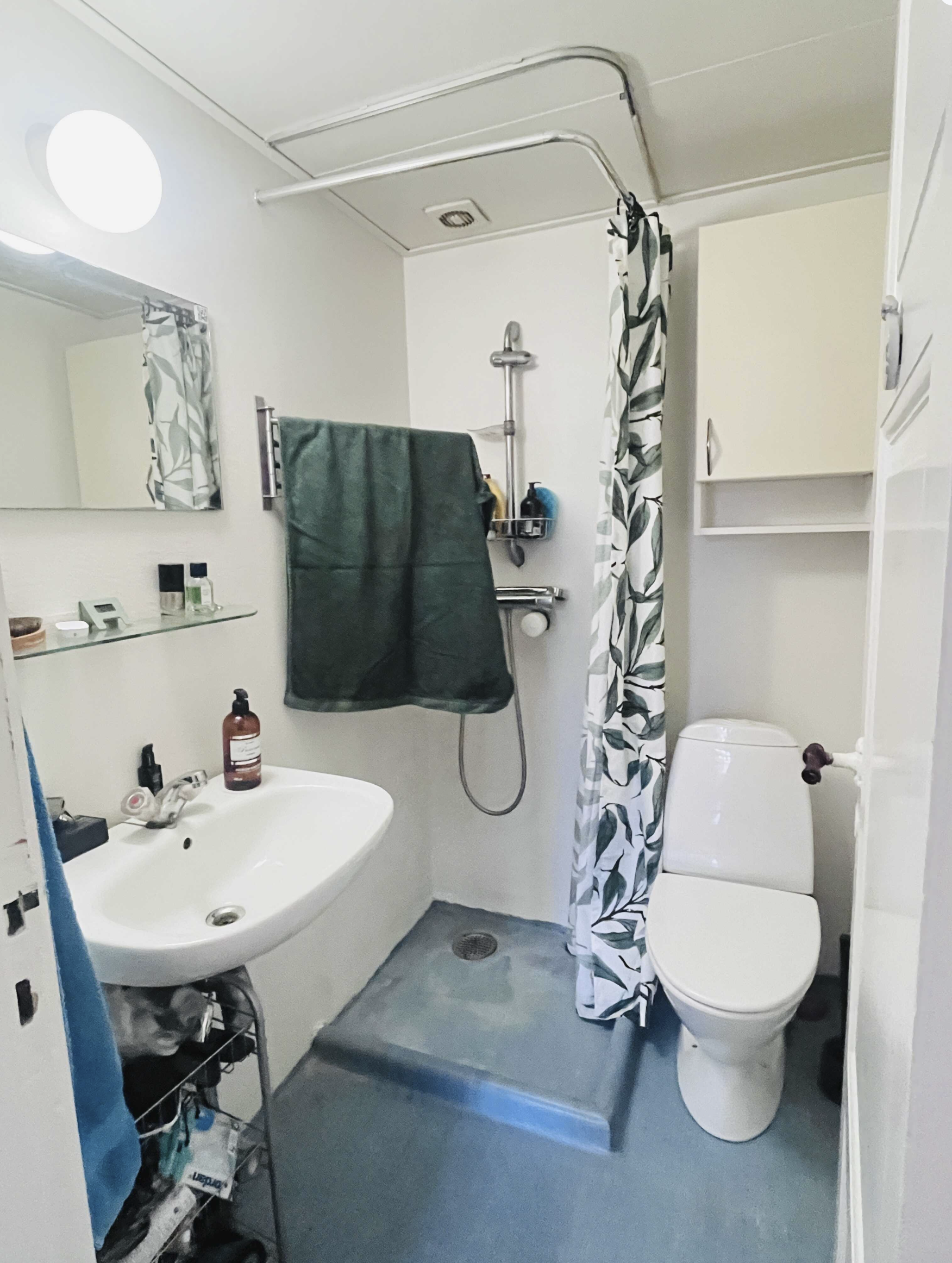 Der er vaske- og tørremulighed i kælderen og parkeringsmulighed for bil lige uden for ejendommen.